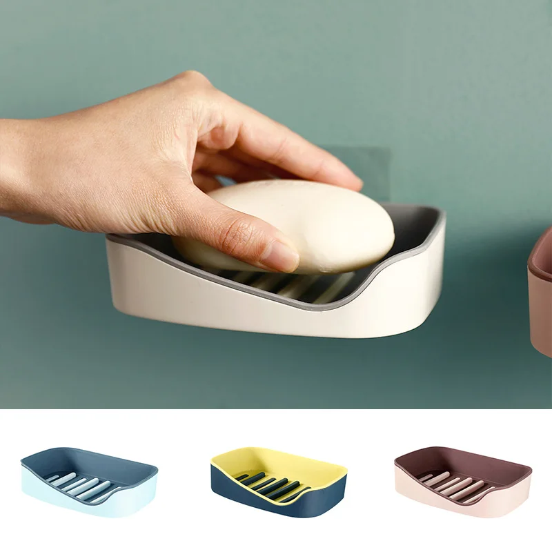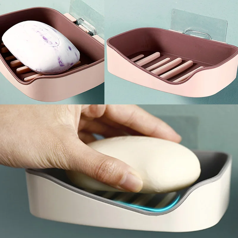 Contrast Color Drain Soap Box Double-Layer Storage Soap Box Bathroom Rack Strong Non-Marking Paste Soap Box