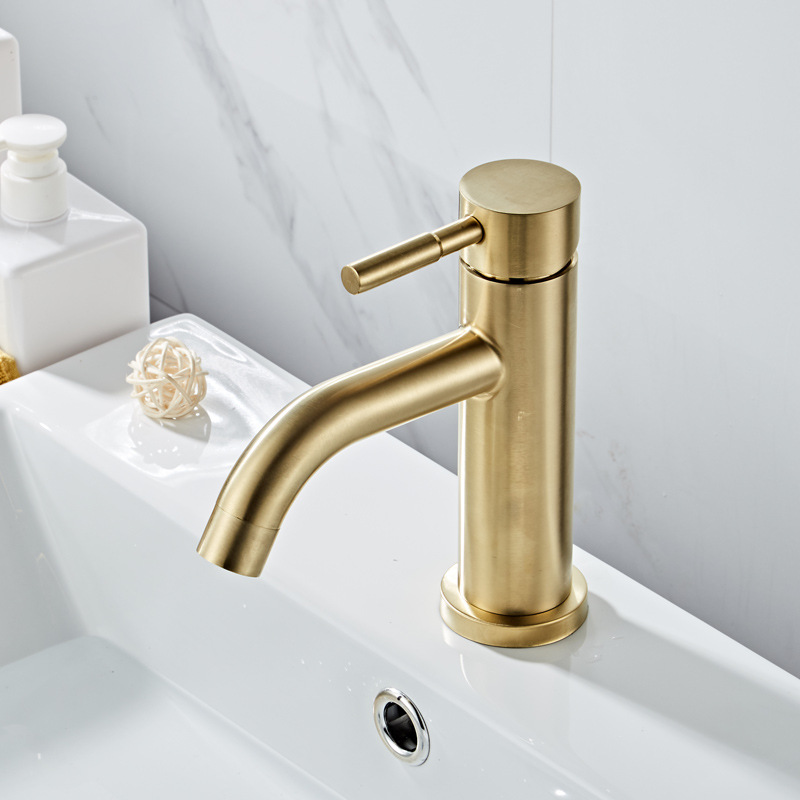 Faucet stainless steel brushed gold minimalist basin faucet hot and cold table up and down basin for household use