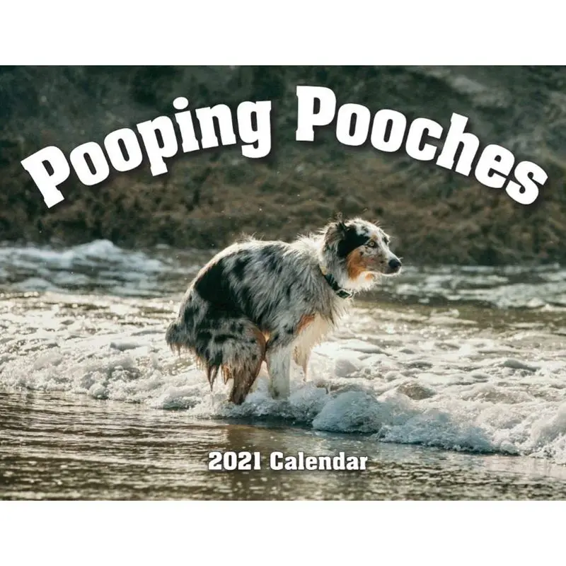 ALL NEW 2021 CALENDAR! White Elephant Party coming up? Yankee Swap? Secret Santa? Do you know someone who loves dogs...too much? This 12 month calendar of pooping dogs will be the most memorable gift you give this year. Talk about a gift that keeps on giving; each month reveals yet another beautiful pooch answering nature's call. And who doesn't like a good cause? The calendar is 17 x 11 inches open and 8.5 x 11 inches when closed. This year's edition features a Pug, Boston Terrier, Weimaraner, Springer Spaniel, Pit Bull, Labrador, Australian Shepherd, Greyhound, and more! The Pooping Pooches dog calendar is the ultimate joke, prank or gag gift. Package included: 1 * Calendar