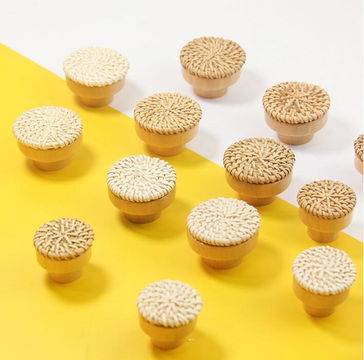 6pcs solid wood rattan handle rattan weaving handle rattan wood handle drawer circular wood handle