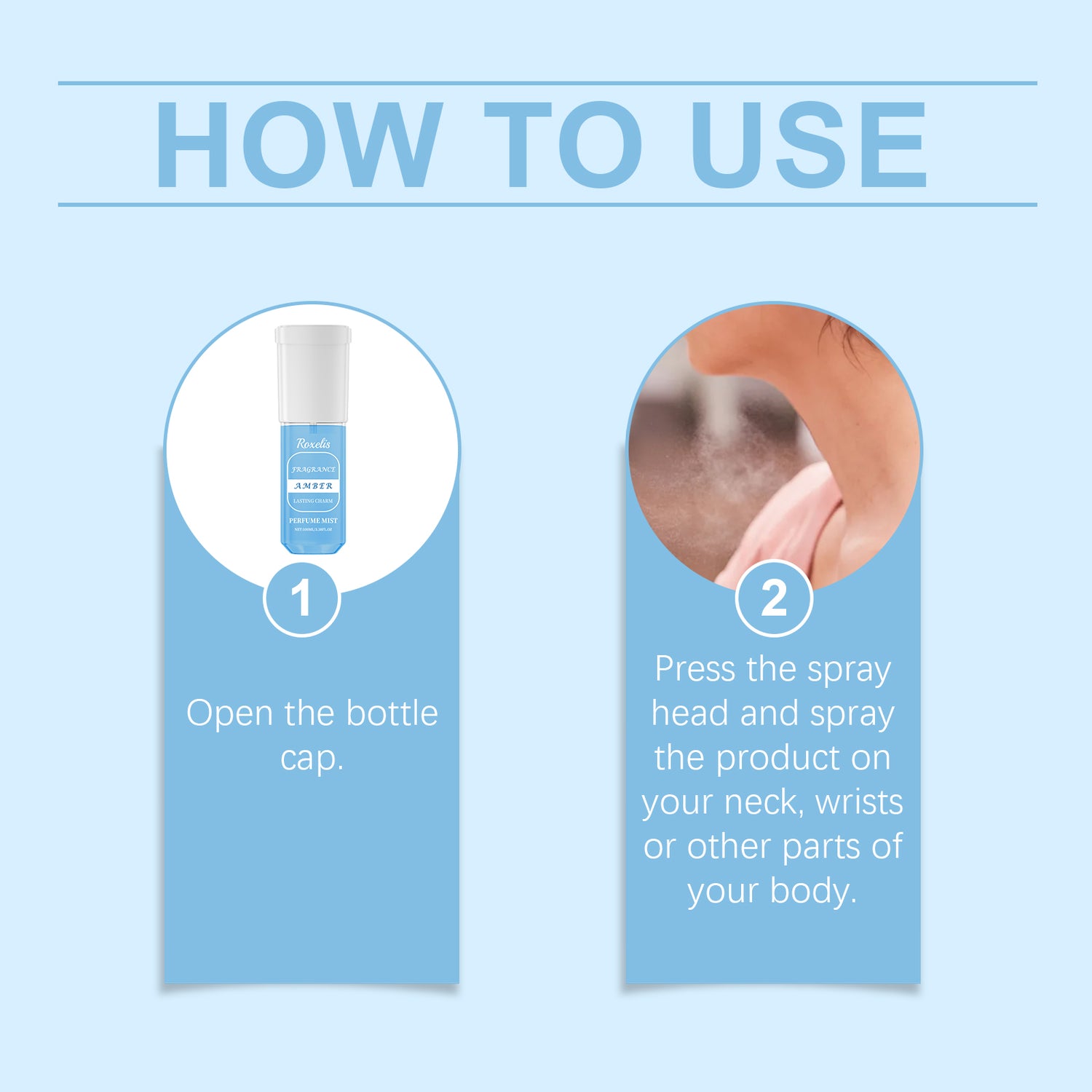 Our Amber Jasmine perfume spray contains glycerin and jasmine flower extract. It can provide a fresh fruit aroma, adding depth and complexity to the aroma. It has a fresh floral scent that enriches the base of the perfume. How to use it is very simple: 1. Open the bottle cap. 2. Press the sprayer and spray the product on your neck, wrists or other parts of your body. Brings fresh fragrance. Fresh and quiet. Gentle and elegant, enhance personal charm.