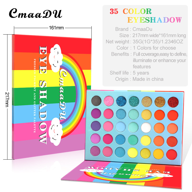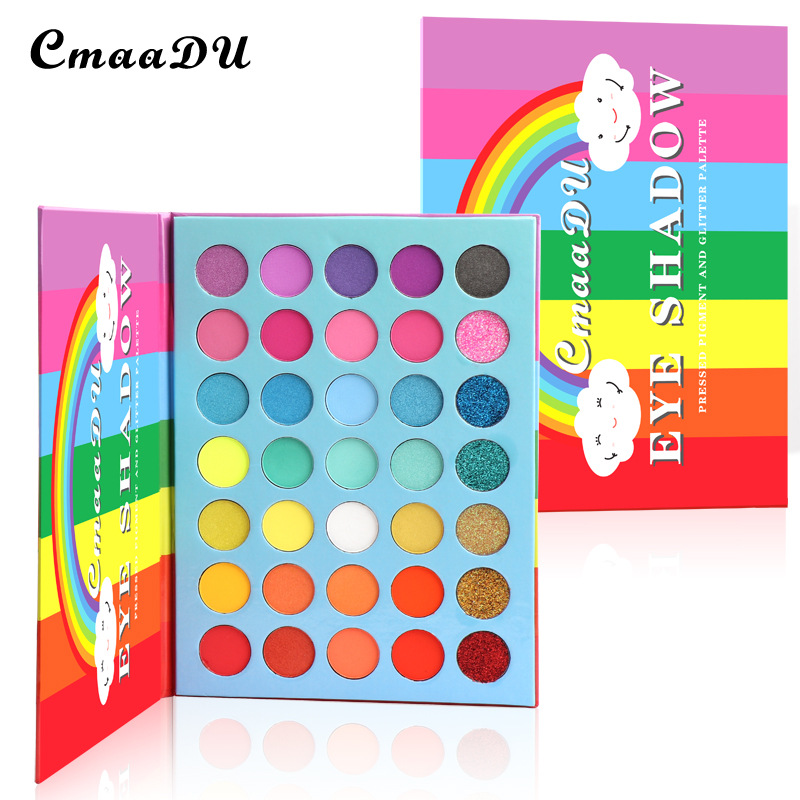 CmaaDu 35 Colors Rainbow Matte Eyeshadow Metal Waterproof Glitter Eyeshadow Palette