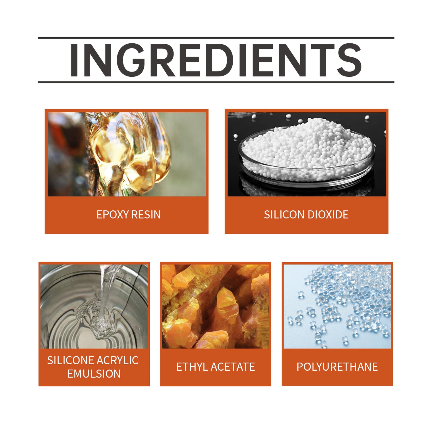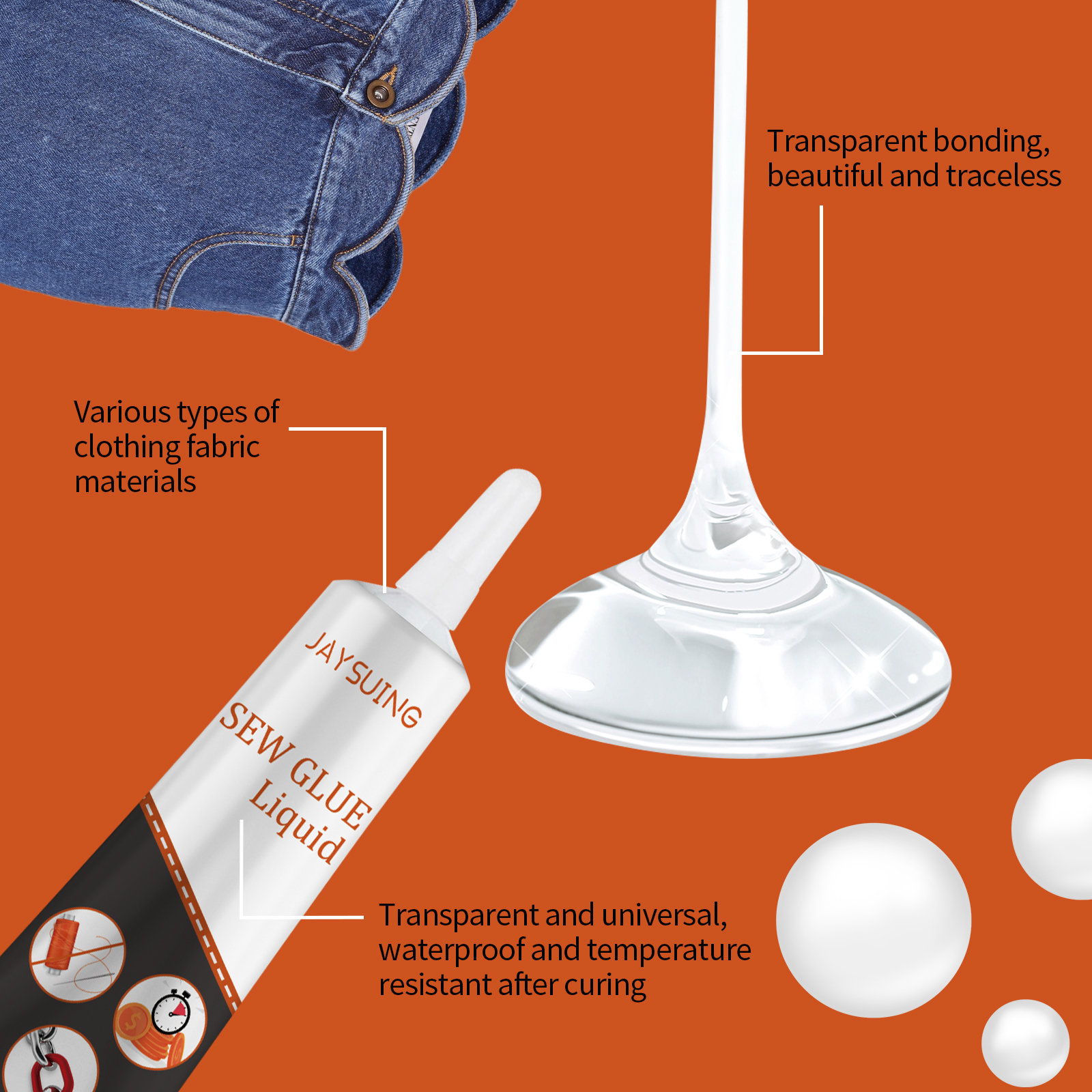 Our fabric repair glue contains epoxy resin, silica. It is transparent and universal, waterproof and temperature resistant after curing, suitable for various environments. Designed for clothing, flannel, denim and leather for quick repair and strong bonding. Its use is simple: Attach to another piece of fabric and press firmly for 30 seconds. The glue will set in 5-10 minutes and fully cure in 2-10 hours. Apply a thin layer of glue to one side of the fabric. Don't wash the fabric for 24 hours. And durable, easy to repair.