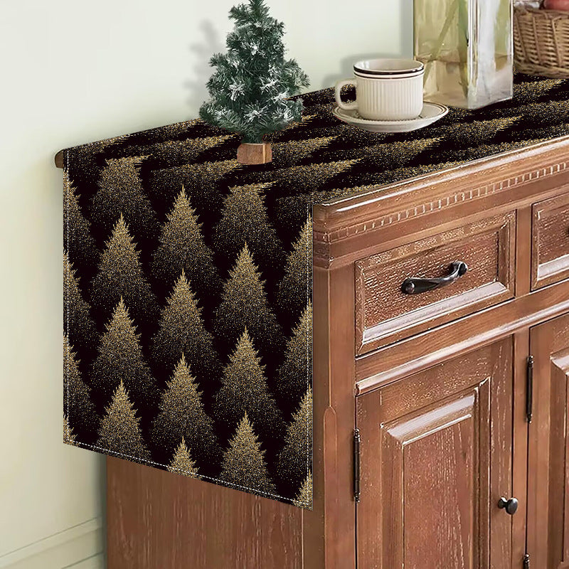 Golden Christmas Tree Printed Table Flag Winter Festival Home Living Room Dining Table Decoration Tablecloth Mat Tea Flag - V.I.P Digital Presence
