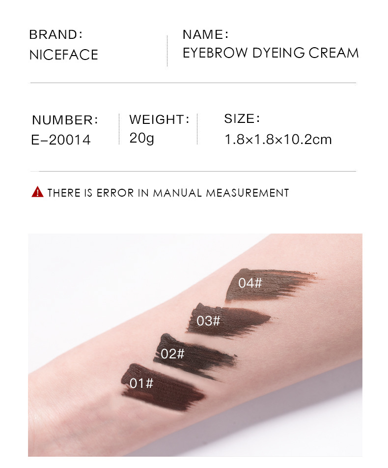 NICEFACE New 4 Color Eyebrow Dyeing Cream Slim Brush Head Waterproof/Anti-Sweat Eyebrow Dyeing Liquid Long Lasting Makeup Without Smudging - E20014-01# is backordered and will ship as soon as it is back in stock.