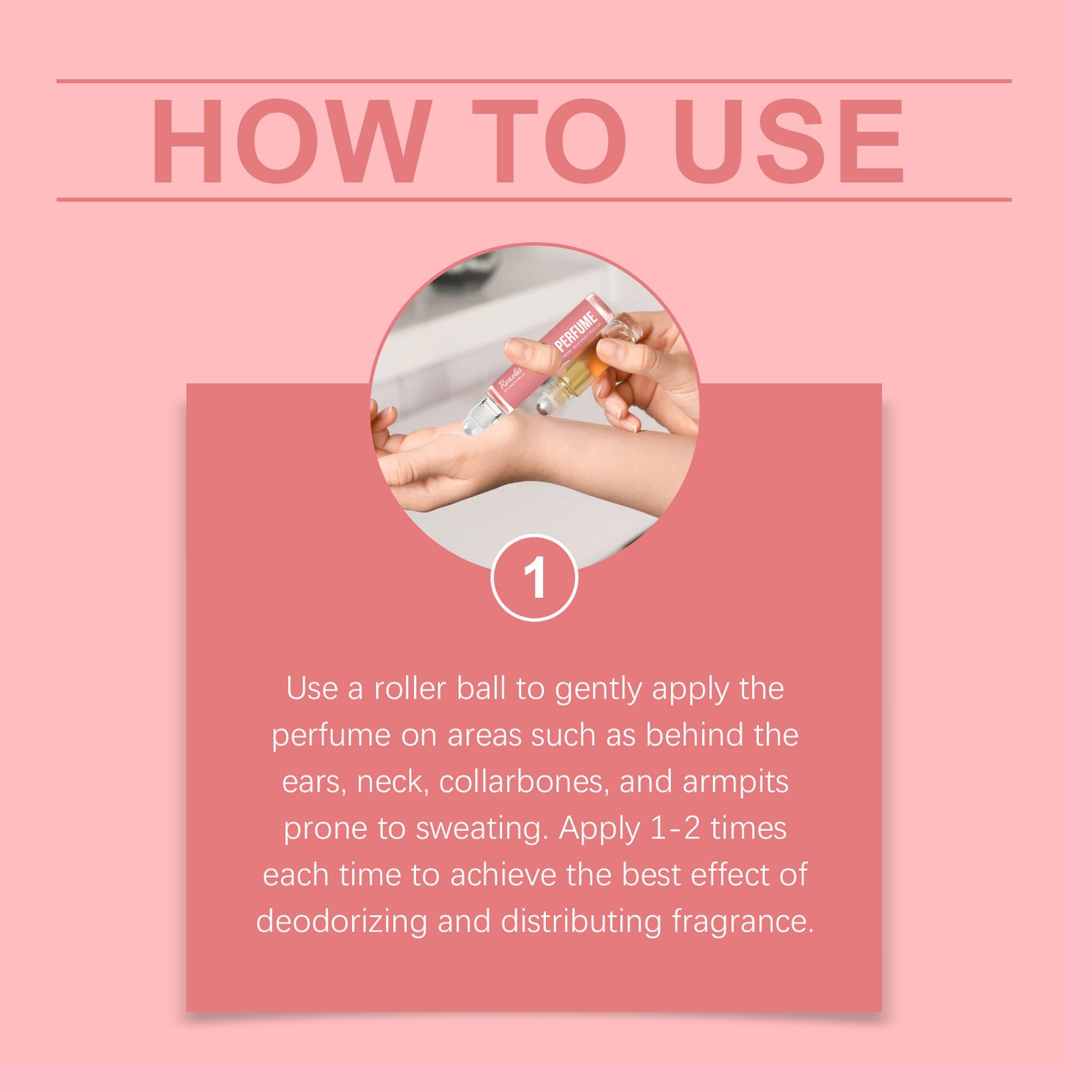 Our Rose Body Roll Perfume contains rose oil, patchouli leaf extract and grapefruit peel oil. It can exude elegant fragrance and enhance self-confidence; Long-lasting pleasant scent. Brings fresh fruit, fresh and refreshing. Its application is simple: Use a rolling ball to gently apply the perfume to sweaty areas such as behind the ears, neck, collarbones and armpits. Use 1-2 times each time to achieve the best effect of deodorization. Keep the scent charming throughout the day to keep you confident. Roller type ball design, easy to use anytime and anywhere.