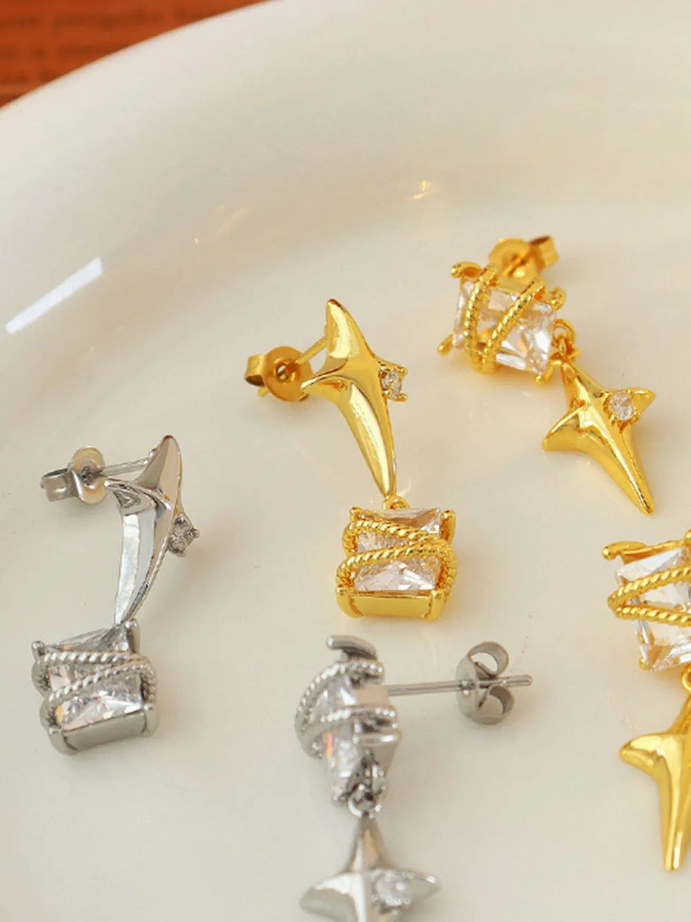 Zircon Copper Geometric Drop Earrings - Silver / One Size is backordered and will ship as soon as it is back in stock.