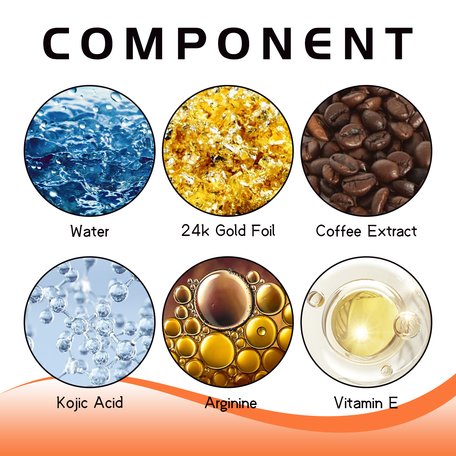 Our 24k Gold Peptide Reversal Serum contain 24 k gold foil, kojic acid, arginine. It can reduces the appearance of fine lines and wrinkles, reduces puffiness and dark circles, plumps up and smooths skin, brightening and tightening, repairing and moisturizing skin. Its usage is simple: Wash and dry skin, apply an appropriate amount of essence evenly on the face and neck, massage gently with your hands in circular motions for absorption. Accelerate the skin's nutrient absorption, promote microcirculation and make bose skin rebound and rejuvenate.