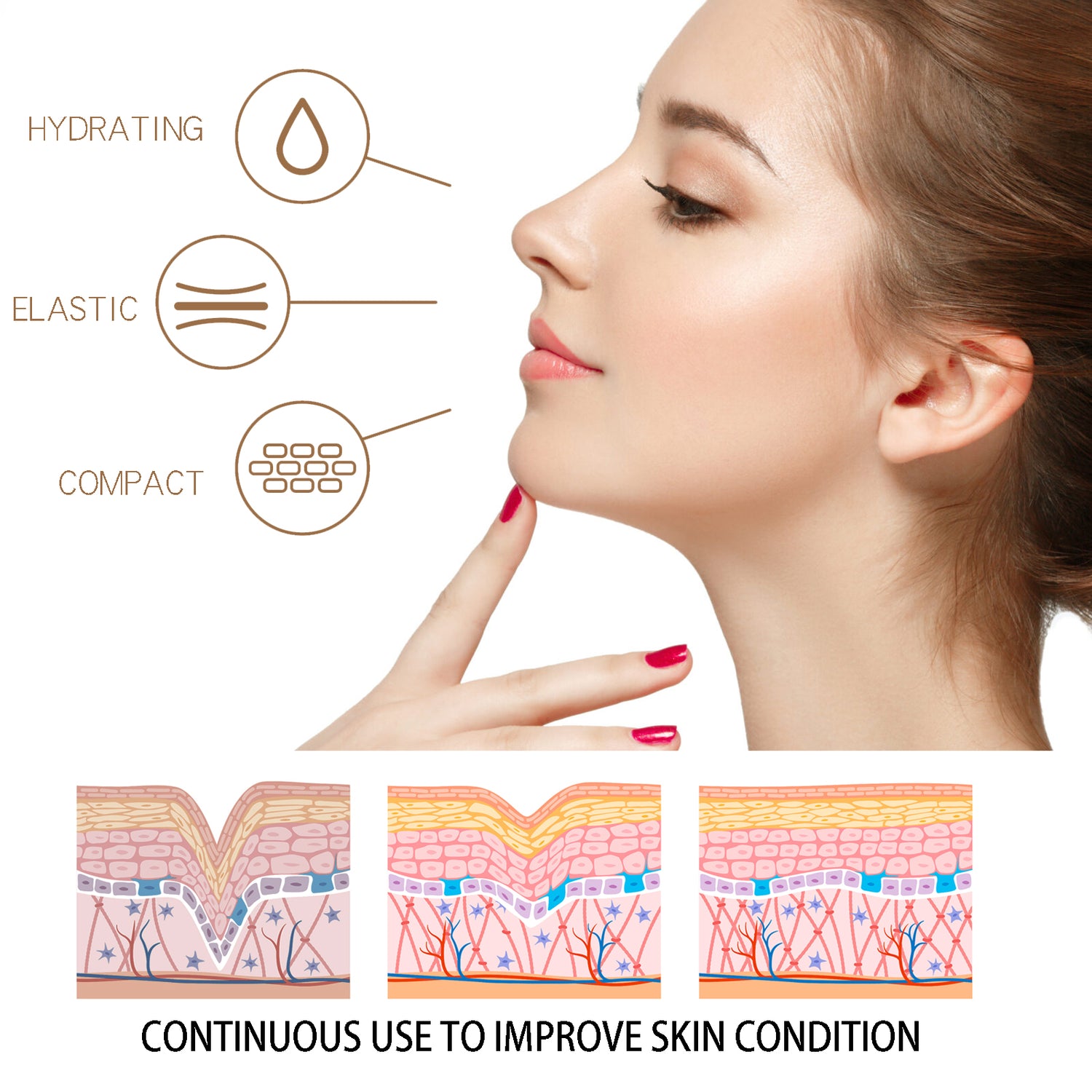 Our anti-aging creams contain niacinamide, sodium hyaluronate, and acetyl hexapeptide-8. It can moisturize and firm, elastic, fast anti-wrinkle, continuous use, improve skin condition. Its use method is very simple: after cleansing and toning, take appropriate amount of the cream evenly apply to the face and neck, gently pat and massage with your hand to make it absorb. Anti-aging cream reduces facial fine lines, moisturizes and brightens, firming and anti-wrinkle skin, and leaves skin warm and white.