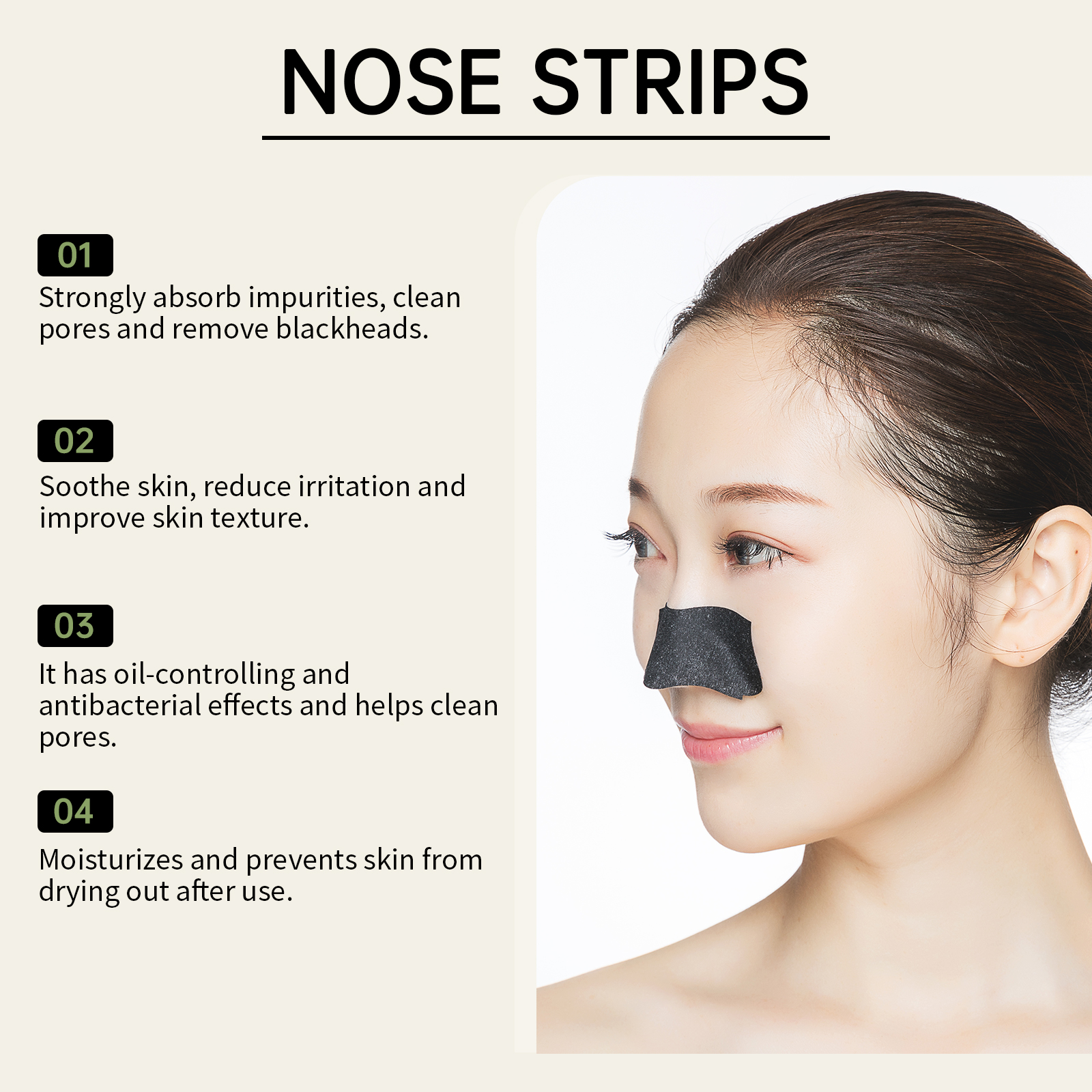 Our Blackhead pore patch range contains glycerin, tea leaf oil, chamomile extract. It strongly absorbs impurities, cleans pores and removes blackheads. Soothe skin, reduce irritation and improve skin quality. It has oil-controlling and antibacterial effects and helps to clean pores. Moisturize and prevent dry skin after use. Its use method is very simple: 1. Clean the nose and surrounding skin; 2. Take out the patch, stick it on the nose, gently press it so that the patch is close to the skin; 3. Let it sit for 10-15 minutes, then remove the nose strip. Deep clean pores, effective removal of blackheads. High elastic material, fit the nose, comfortable to use.