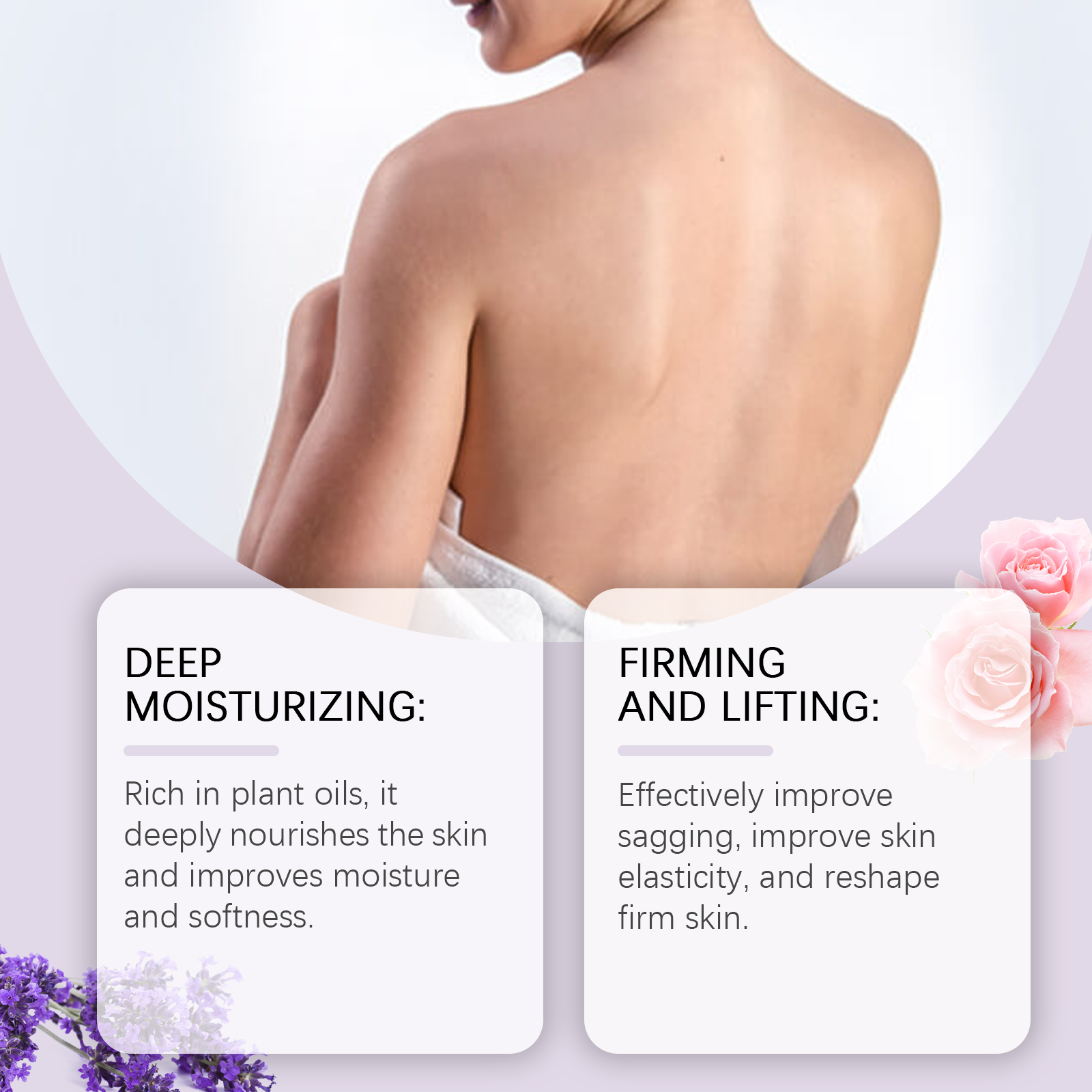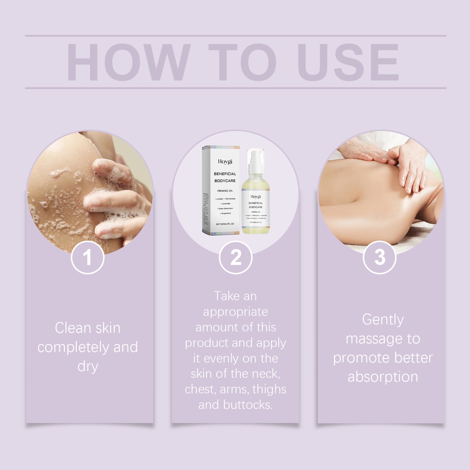 Our body care oil contains grapefruit fruit extract, acetyl tripeptide-1. It can effectively improve skin relaxation, improve skin elasticity, rebuild and firm skin. Its application method is very simple: thoroughly clean and dry the skin, apply appropriate amount of this product evenly on the skin of the neck, chest, arms, thighs and buttocks, gently massage to promote better absorption. And can activate the skin energy, regain the youthful luster.