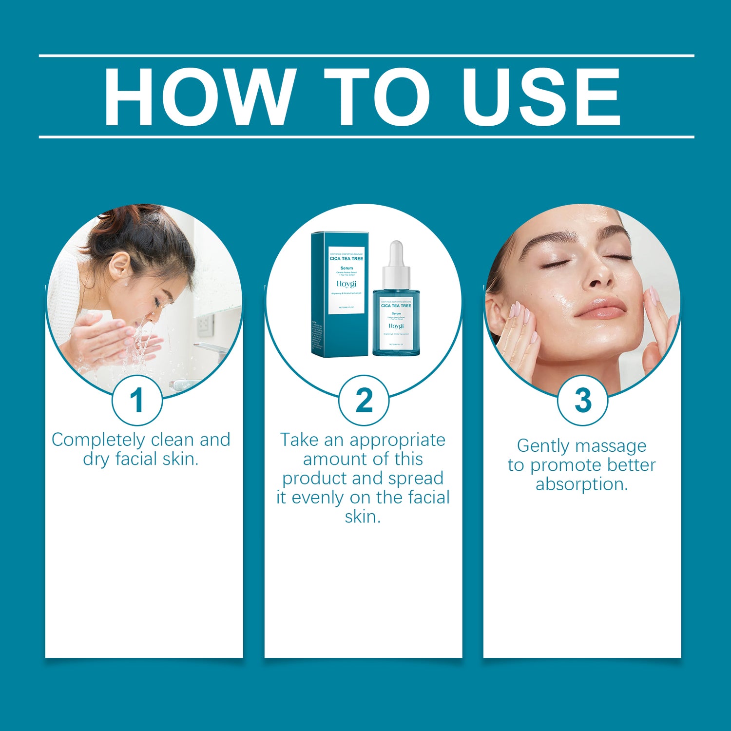 Our Centella essence contains niacinamide and acetyl tripeptide-1. It can improve the elasticity of the skin, making the skin firmer and more energetic. Its application method is very simple: completely clean dry facial skin, apply appropriate amount of this product evenly on facial skin, gently massage to promote better absorption. And can promote collagen synthesis, enhance skin elasticity, reduce fine lines.