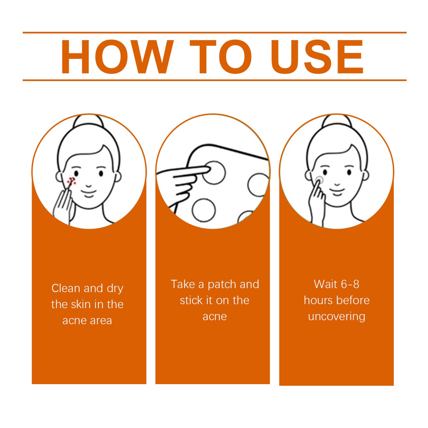 Our acne acne patches contain glycerin and hydroxyethyl cellulose. It regulates sebum production, prevents new pimples and keeps skin fresh. Its application is simple: clean and dry the skin of acne areas; Take a patch and put it on the pimple; Wait 6-8 hours to uncover. And it can fit the skin, directly act on acne, accelerate the maturation and fading of acne, and reduce the formation of scars.