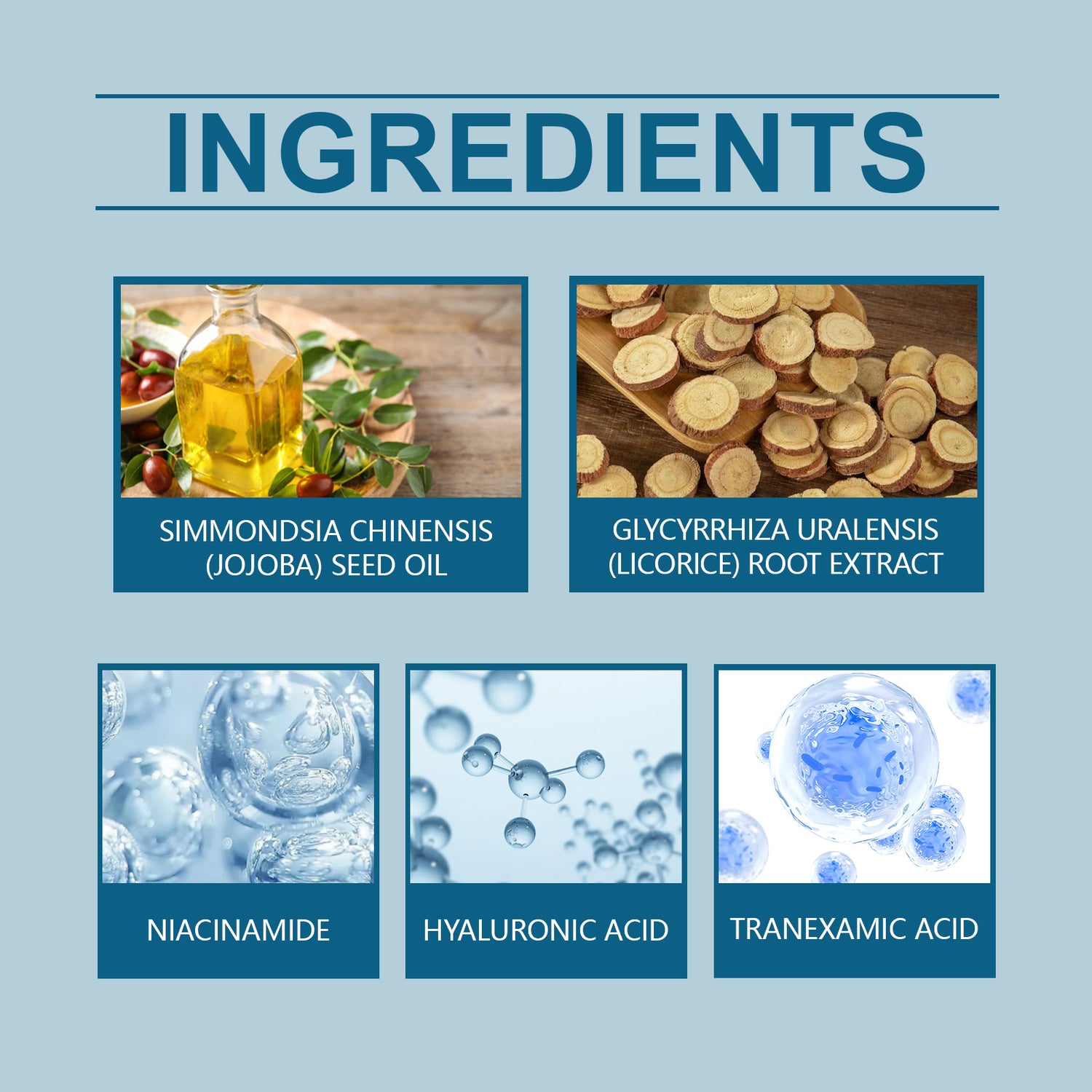 Our facial cream contains niacinamide, tranexamic acid and licorice extract. It can replenish the nutrients needed by the skin and restore vitality. The way to use it is simple: clean the facial skin and keep the skin dry. Take the appropriate amount of cream and apply it evenly to your face. Massage gently to promote absorption. And suitable for all skin types, safe to use.