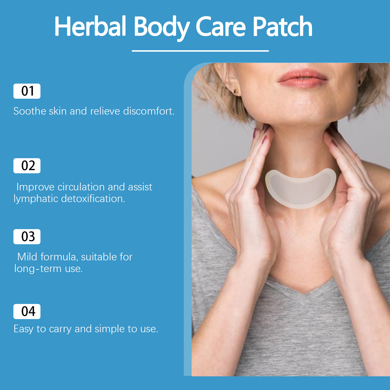 Our herbal care patches contain olive oil, honeysuckle extract and Astragalus extract. It can effectively relieve discomfort and bring a relaxing skin care experience. Multiple extracts combine to help improve skin vitality and circulation. The way to use it is simple: 1. Clean and dry the neck skin. 2. Remove the patch and peel off the film on the back. 3. Place the patch on the thyroid gland and press the edges to ensure a good fit. Help lymphatic vessels drain smoothly, reduce lymph node obstruction, and effectively relieve lymphoma and lymphatitis.