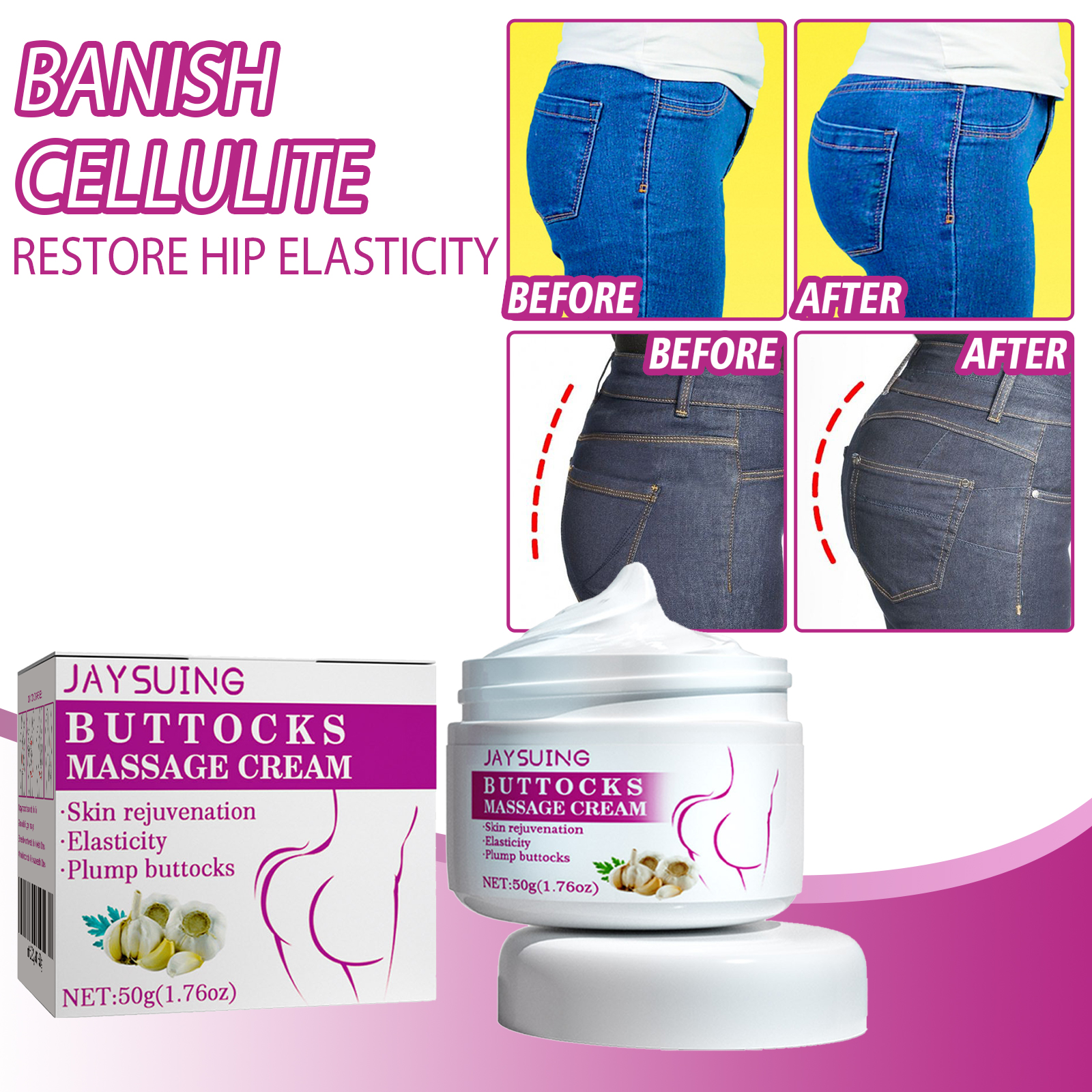 Our butt care cream contains comfrey extract, garlic, flaxseed oil. It can tighten the line, lift the buttocks, create a smooth and beautiful buttocks, eliminate cellulite, restore the elasticity of the buttocks, its use method is very simple: apply the right amount on the skin; Place palms on hips and gently massage; Press down from the waist to the hips 10 times; Wave press 10 times from hip to thigh. Naturally extracted, it moisturizes and tightens the skin, rejuvenates the skin, improves elasticity and gives fullness to the buttocks.