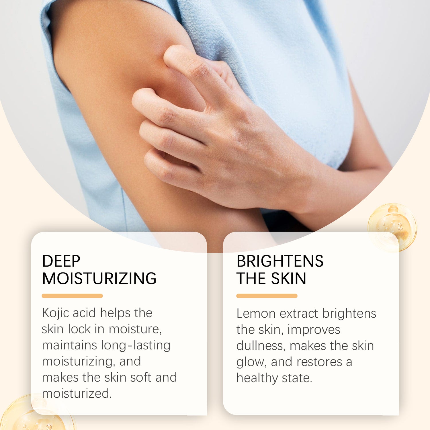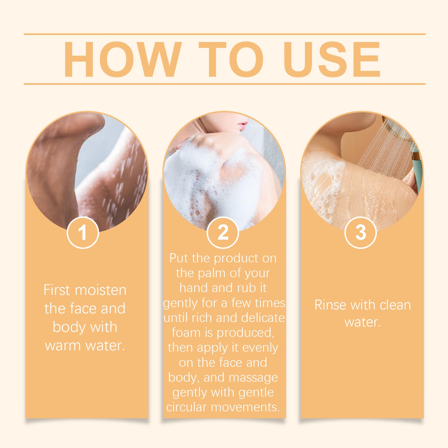 Our lemon turmeric acid soap contains turmeric root extract, kojic acid, lemon extract. It helps skin lock in moisture, keeping it moisturized for a long time, leaving skin soft and moisturized. The way to use it is simple: 1. First wet the face and body with warm water. 2. Place the product on the tender palm, gently rub several times until a rich and delicate foam is produced, then evenly apply on the face and body, gently massage with a gentle circular motion; 3. Rinse with water. Lemon essence brightens skin, improves dullness, makes skin thin and restores health.