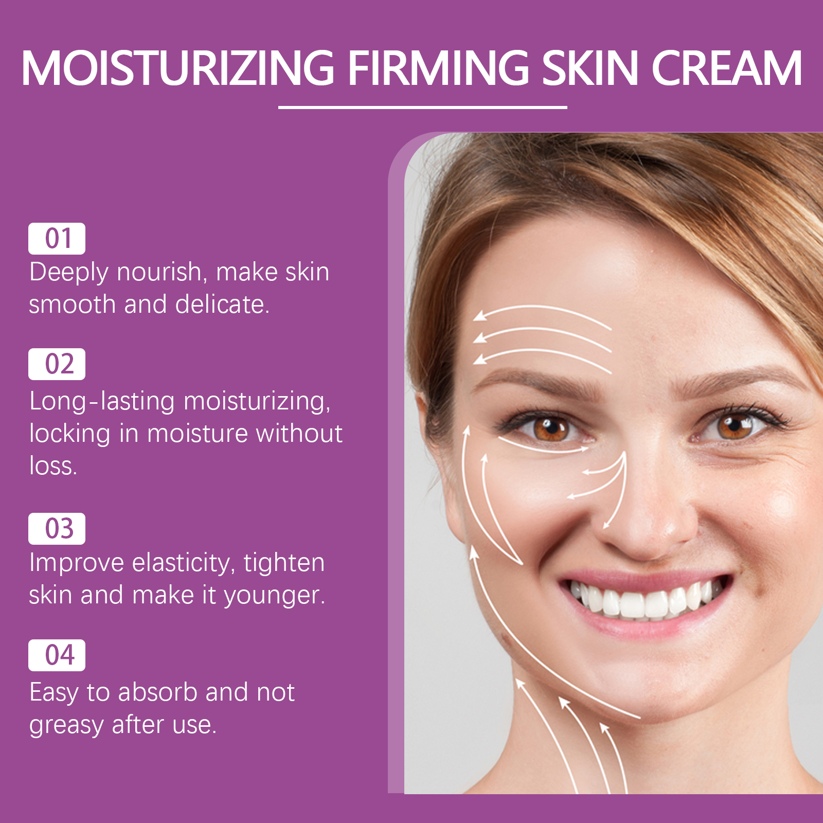 Our moisturizing firming cream contains avocado oil, hyaluronic acid. It can bring long-lasting moisturizing to the skin and make the skin look brighter and more attractive. The way to use it is simple: clean the skin and keep it dry. Take the appropriate amount of cream and apply it evenly to the skin. Massage gently until fully absorbed. It can improve skin elasticity, even skin tone, glow naturally, deeply nourish skin, lock moisture, and make skin more delicate and smooth.