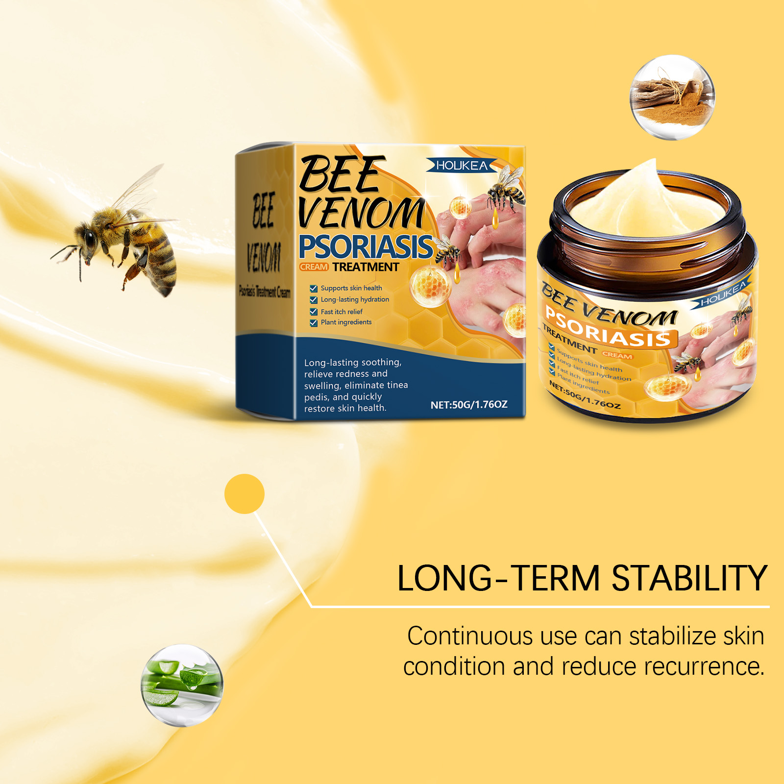 Our skin care cream contains bee venom, licorice, aloe vera leaves. It can be designed specifically for psoriasis skin. Its application method is very simple: after the skin is clean and dry, apply appropriate amount of this product evenly to the affected area, gently massage until absorbed. And can be intensively hydrating, improve dryness, and strengthen the skin barrier.