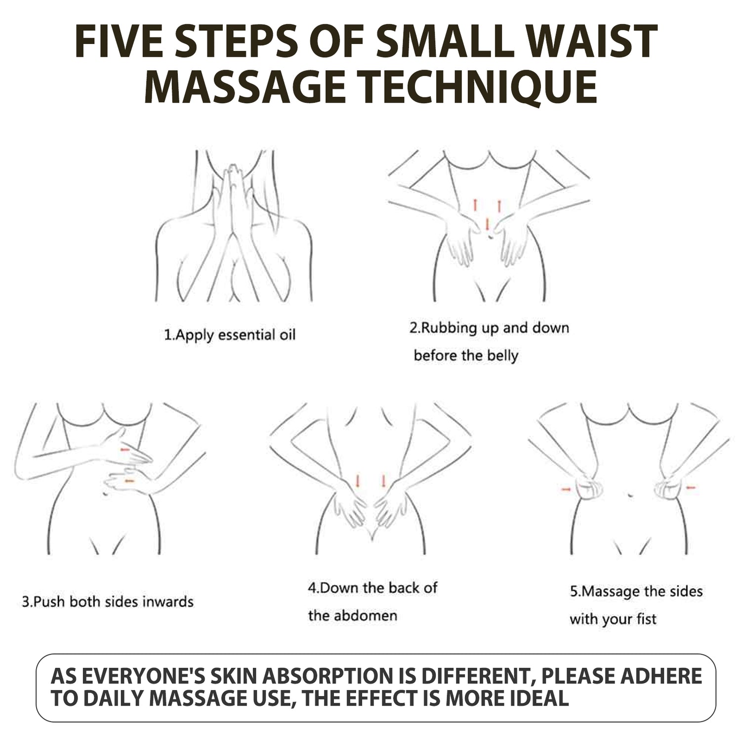 Our slimming essential oils contain Angelica sinensis and castor seeds. It can improve circulation, speed up metabolism, burn calories, and burn excess fat. The way to use it is simple: 1. Apply the essential oil 2. Rub it up and down in front of the stomach 3. Push the sides inward 4. Back of abdomen 5. Massage two with fists. And can provide nutrients for the cells, activate the cells to tighten the skin, make the skin firm and elastic.