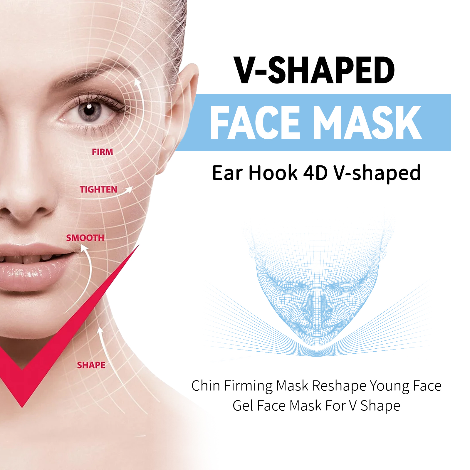 V-Shaped Face Mask, Face Double Chin Firming Small Face Shape Hanging Ear V-Face Lift Mask