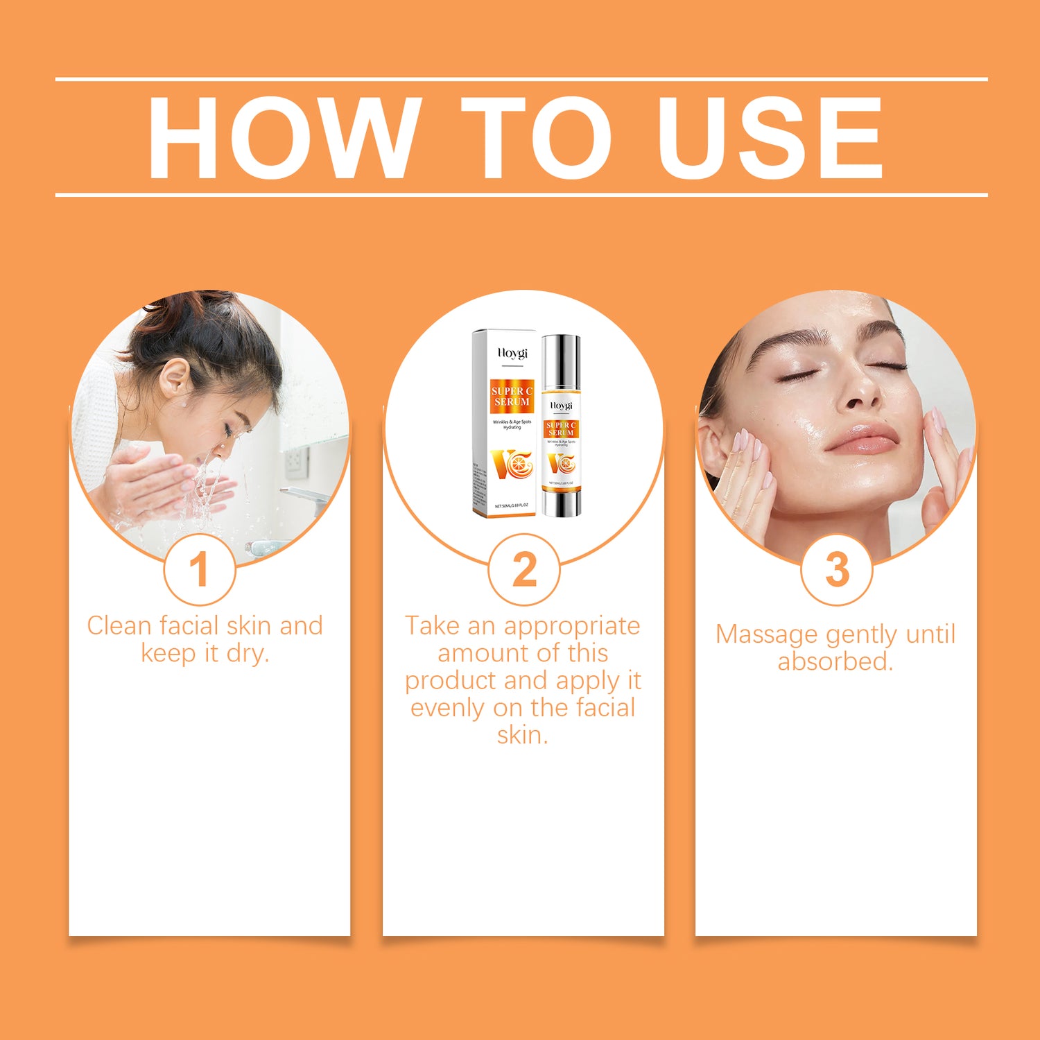 Our Vitamin C serum contains vitamin C (ascorbic acid), hyaluronic acid, and peppermint extract. It can significantly improve fine lines and wrinkles, improve skin firmness, and look youthful and smooth. Its application method is simple: 1. Clean facial skin and keep it dry. 2. Apply appropriate amount of the product evenly on the face. 3. Gently massage until absorbed. After use, the skin becomes softer and more delicate, improves skin quality, reduces roughness and discomfort caused by dryness, and improves the overall health of the skin.