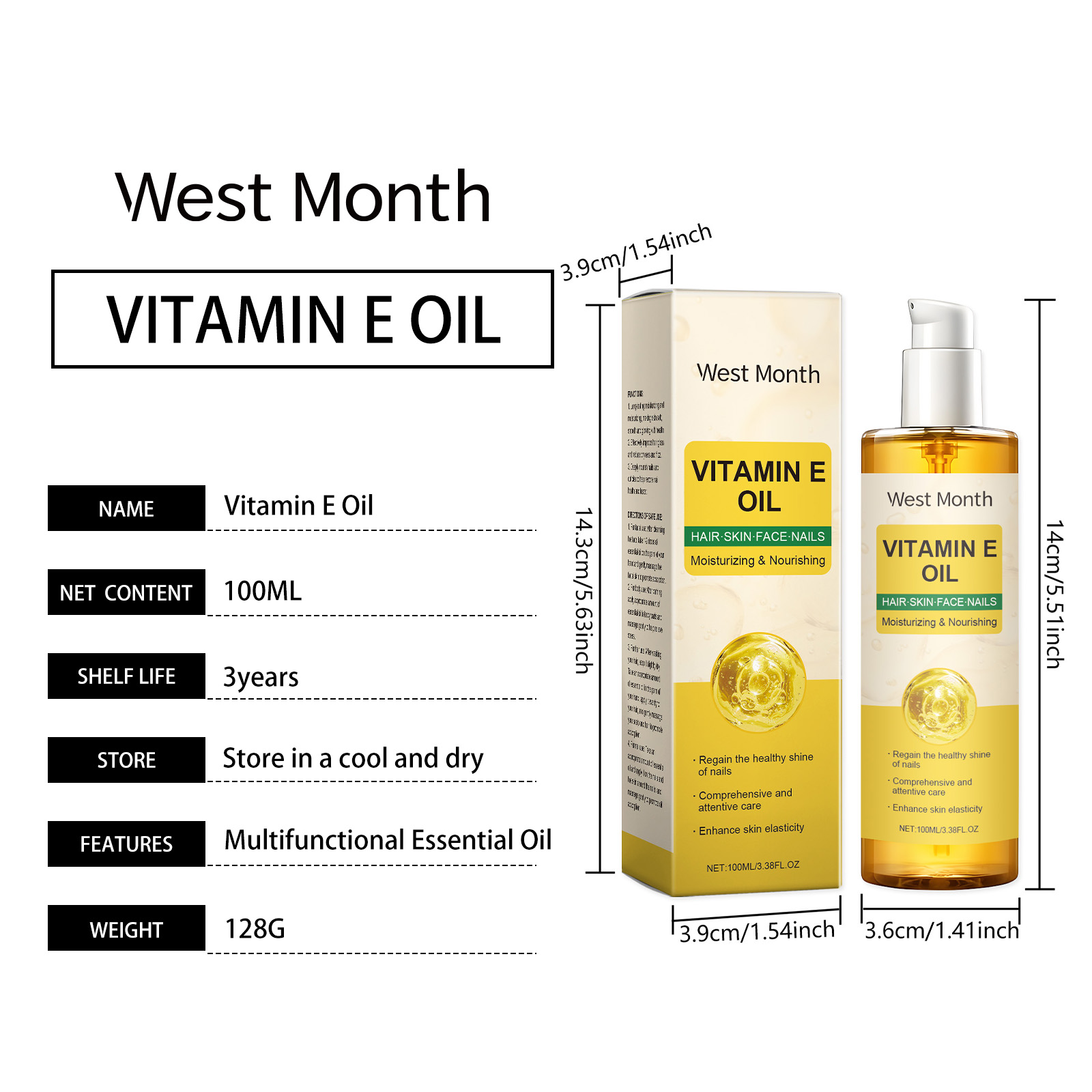 Vitamin E Body Oil, Deeply Nourishes Hair, Nails, Skin, Body Care And Massage