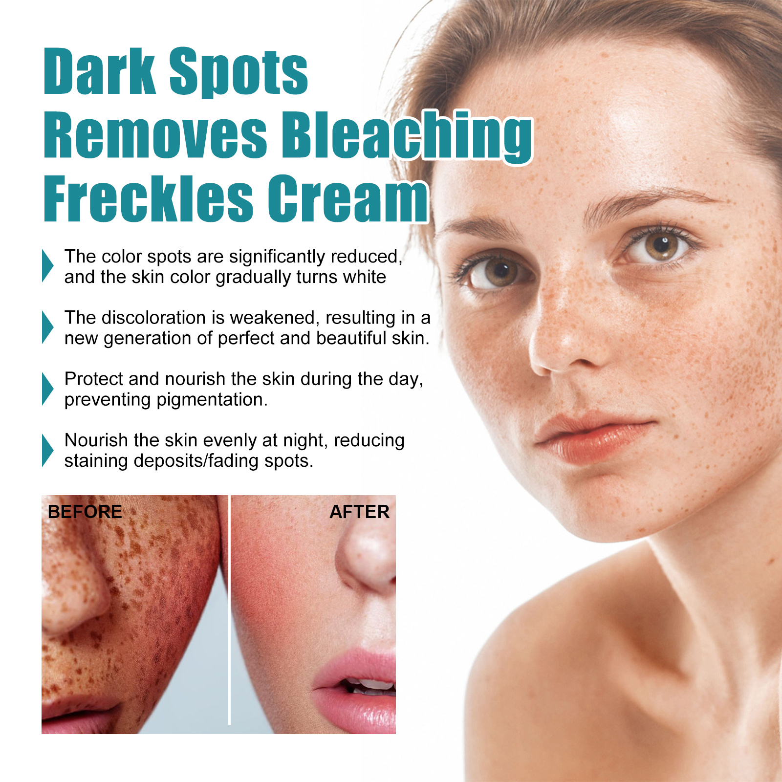 Our whitening spot cream contains glycerin, nicotinamide, peony root extract. It slows down melanin production and prevents the emergence of stubborn melanin; Enhance the antioxidant capacity of skin, effectively slow down the skin saccharification; Peel off the old waste horn, showing its own whitening effect. Its use method is very simple: after cleansing and toning, take appropriate amount of cream evenly apply to the face skin, massage in circles until absorbed. Long-term use can adjust the regeneration and repair ability of skin cells, eliminate the stimulating factors that produce melanin, prevent the regeneration of different types of defects, and achieve the characteristics of smooth, mild and white skin.