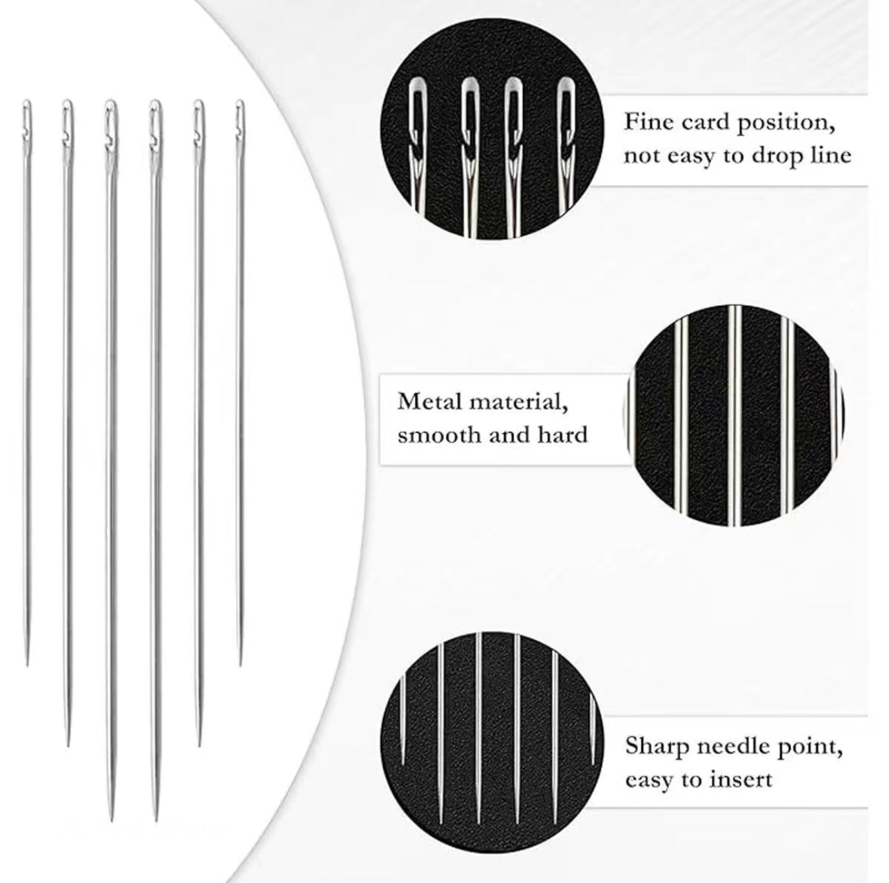 Each needle features a unique side-hole self-threading design, making it effortless to insert thread—an especially valuable feature for users with limited dexterity or vision impairments. The high-quality stainless steel construction resists corrosion, offering long-lasting performance and sharpness for smooth sewing across a variety of fabrics without leaving marks.