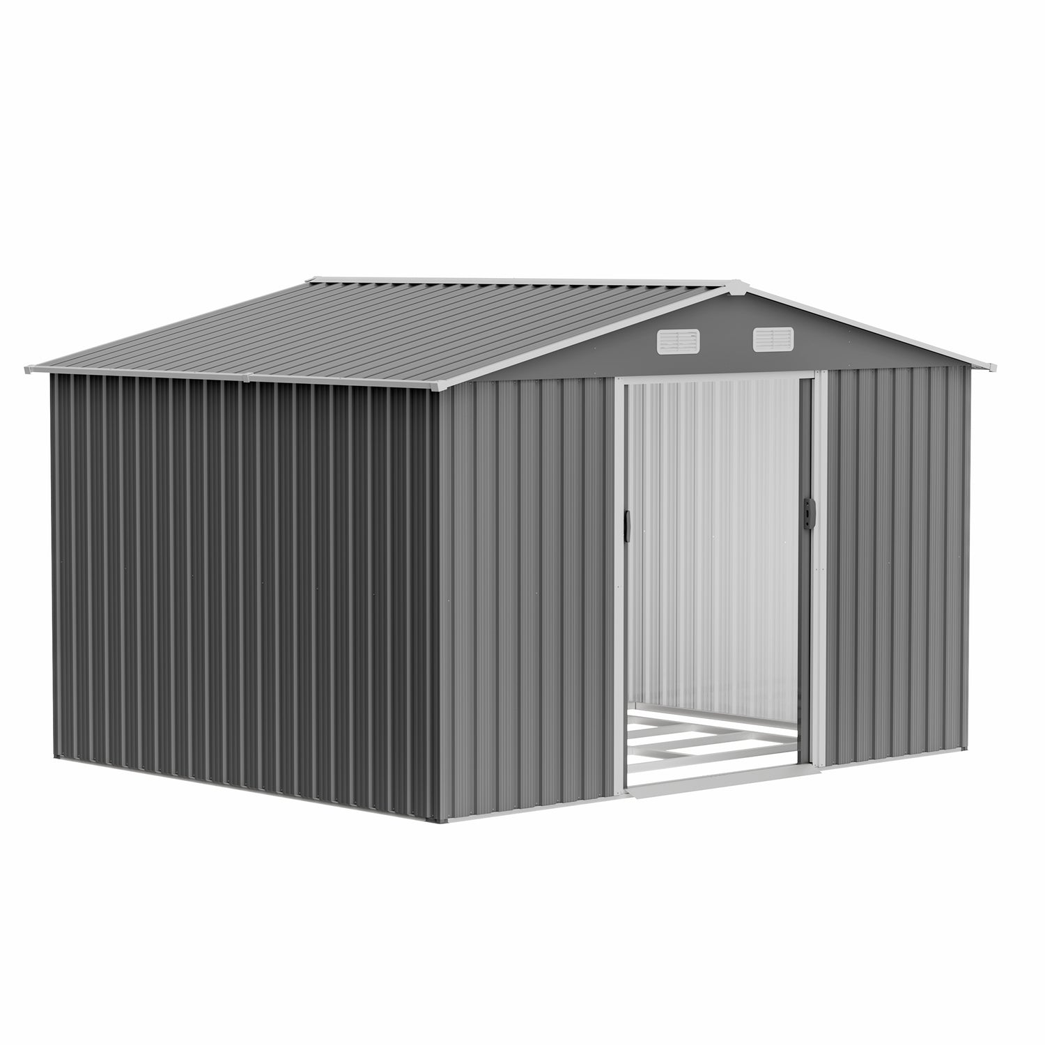 10X8 FT outdoor tool storage shed with metal foundation and lockable door, all-weather metal shed, gray - Gray + Metal is backordered and will ship as soon as it is back in stock.