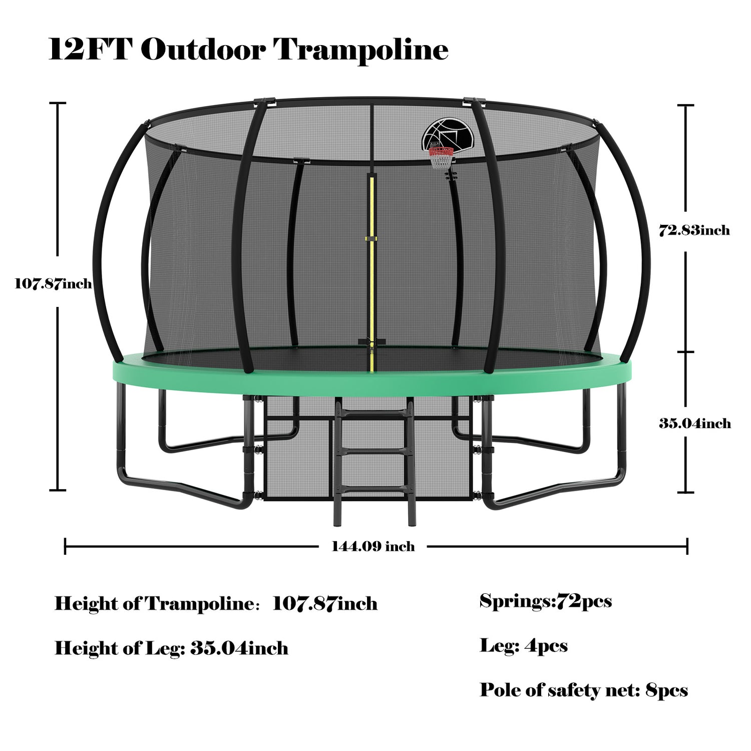 12FT Recreational Kids Trampoline with Safety Enclosure Net & Ladder, Outdoor Recreational Trampolines - Green is backordered and will ship as soon as it is back in stock.