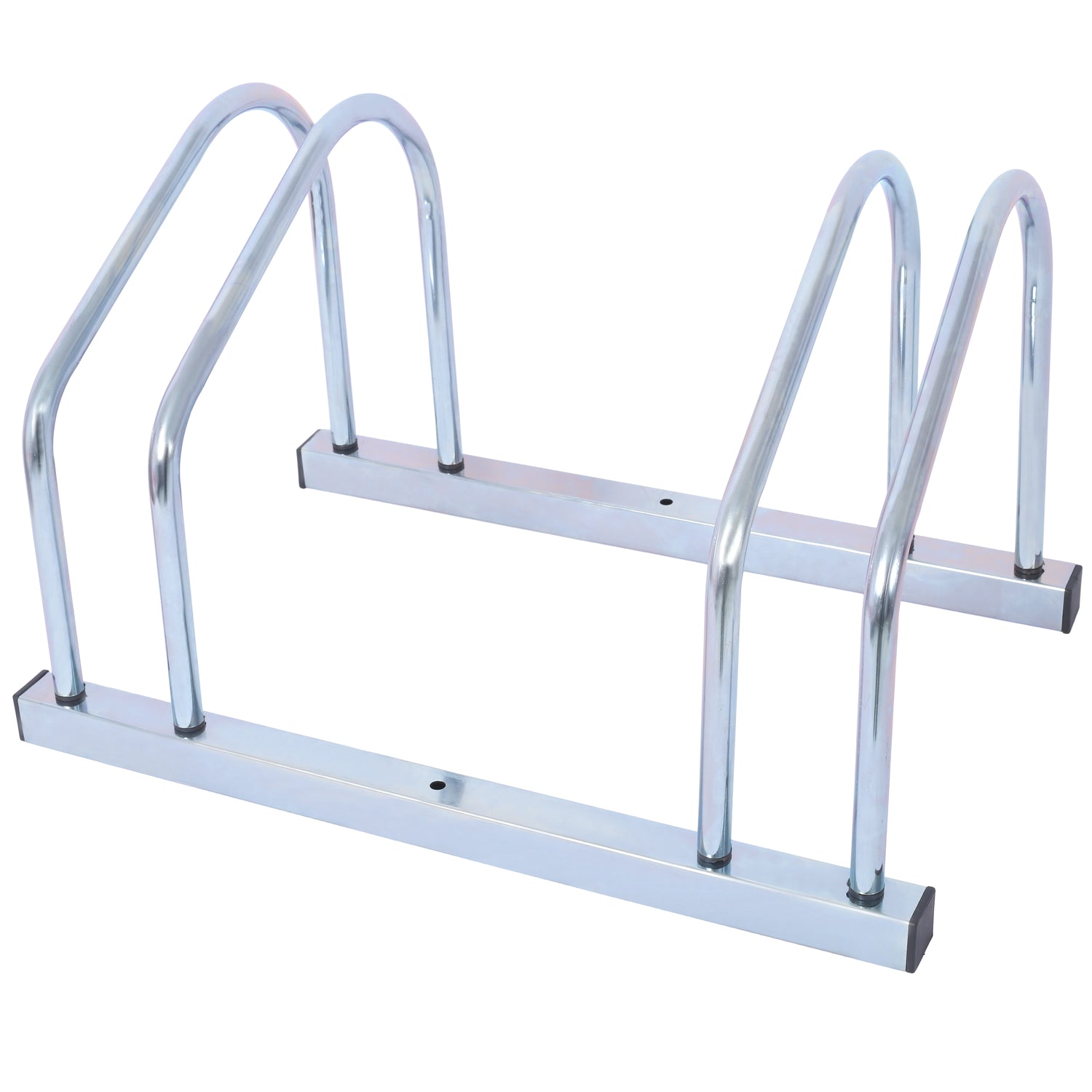 2 bicycle ground bike parking racks 22-28 inch wheel supports, maximum tire width 2.15 inches, galvanized