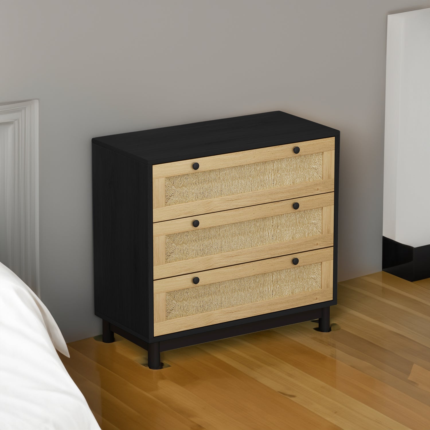 30.31"3-Drawers Storage Cabinet Rope Woven Drawer,for Bedroom,Living Room,Dining Room,Hallways,Black