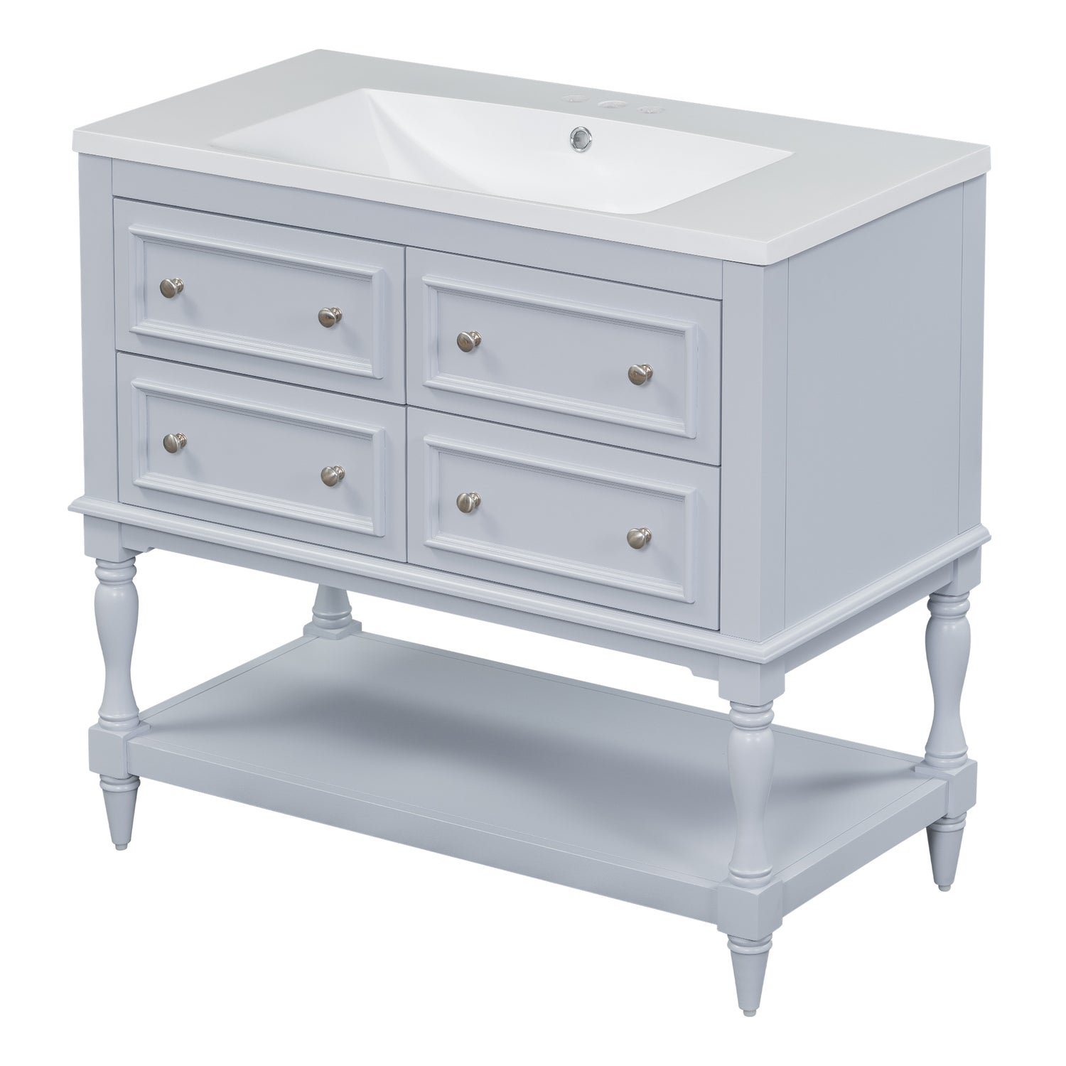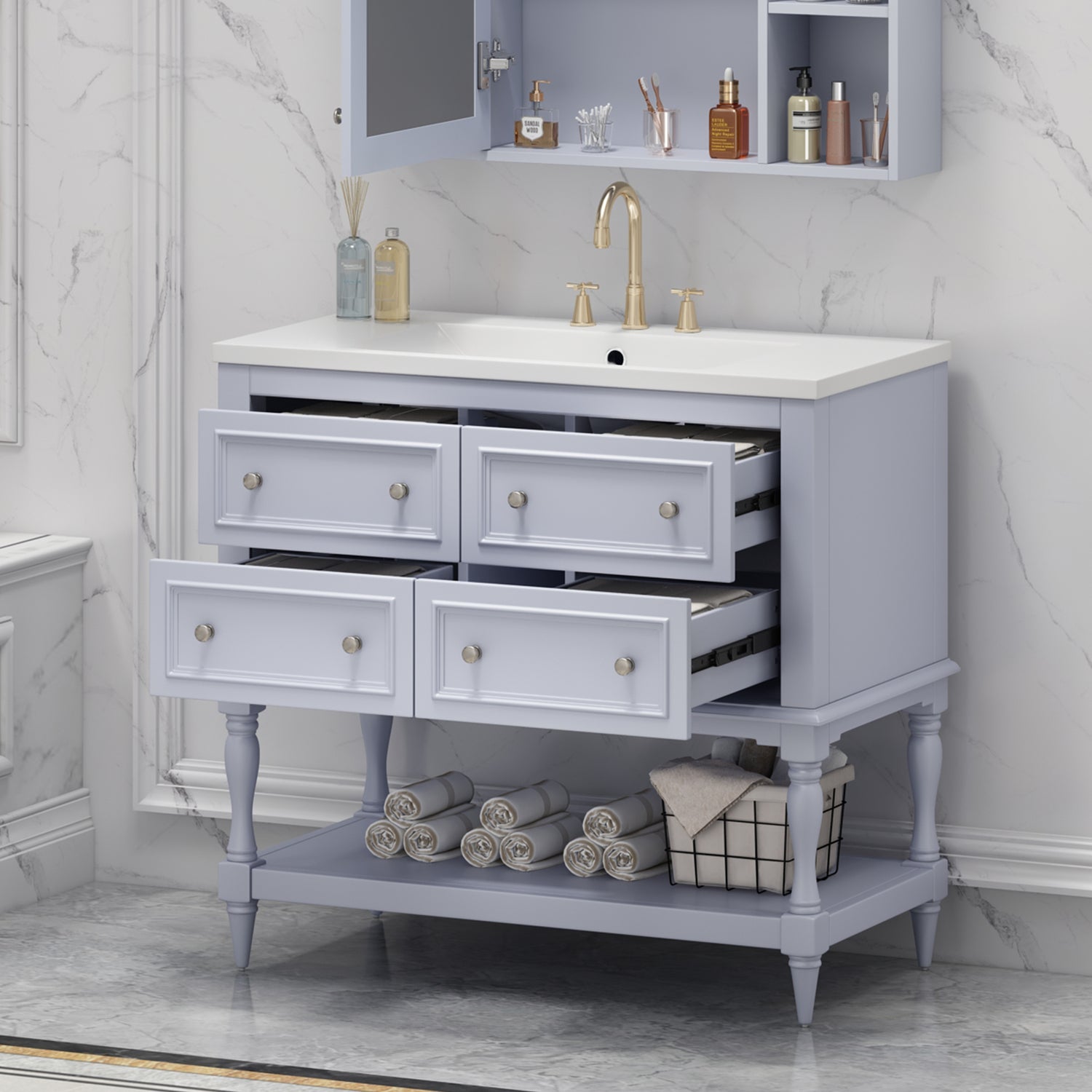 36" Bathroom Vanity Cabinet with Sink Combo Set, Undermount Resin Sink, Free Standing Vanity Set with 4 Drawers Blue - V.I.P Digital Presence