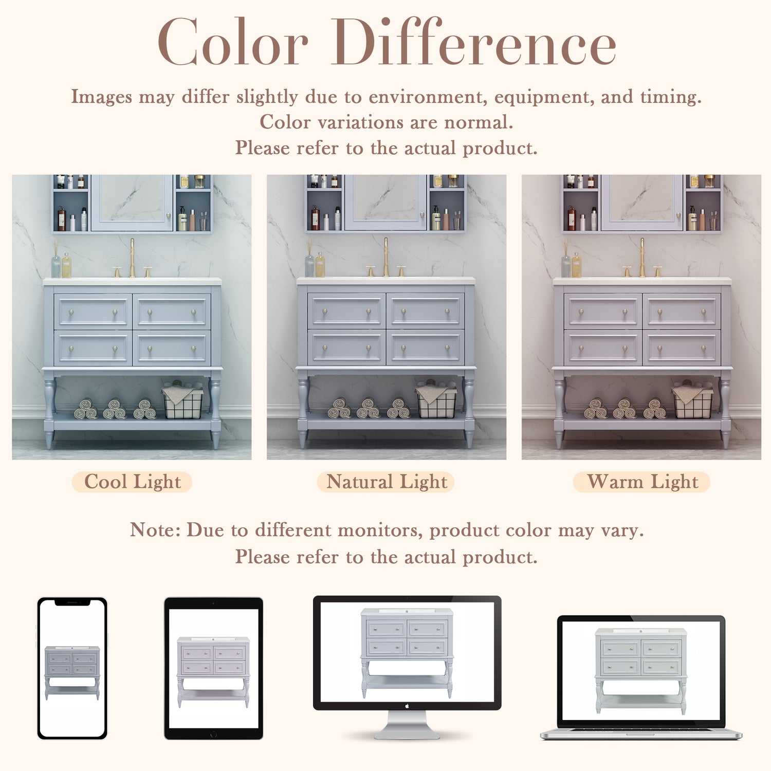 • [ Multi-Purpose Cabinet & Concealed Storage ] Are you looking for stylish and functional storage solutions for your bathroom? Our bathroom vanity provide ample space for all your toiletries and bathroom essentials. The combination of the cabinet body and the drawer perfectly stores all kinds of bathroom products and keeps the necessities away from water stains and dust. Soft-close doors and drawer fronts feature a water-resistant paint finish for durability.