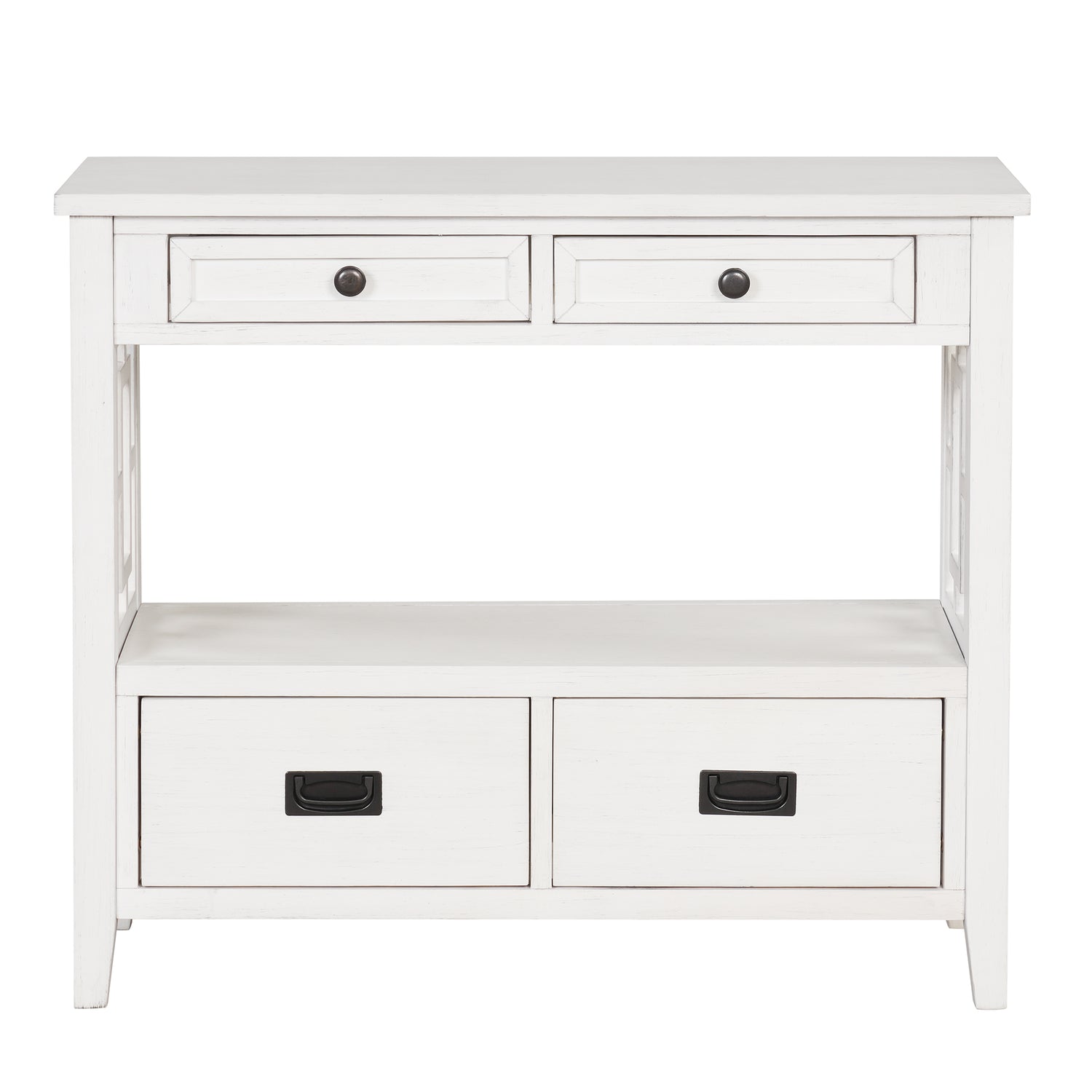 36'' Farmhouse Pine Wood Console Table Entry Sofa Table with 4 Drawers & 1 Storage Shelf (Antique White)