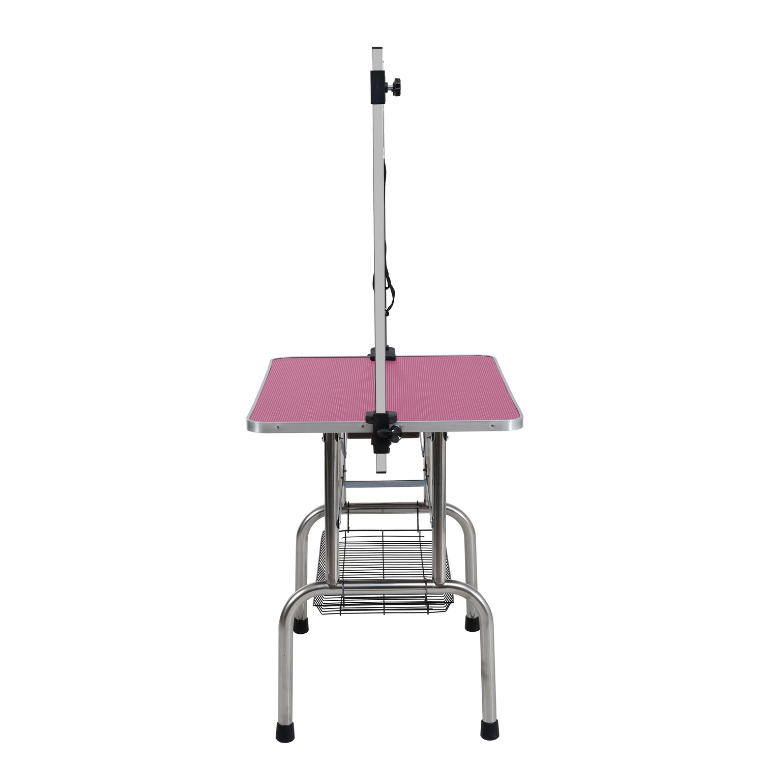 36 inch folding pet grooming table with stainless steel frame and rubber pad, equipped with adjustable armrests and clips (pink) - Pink is backordered and will ship as soon as it is back in stock.