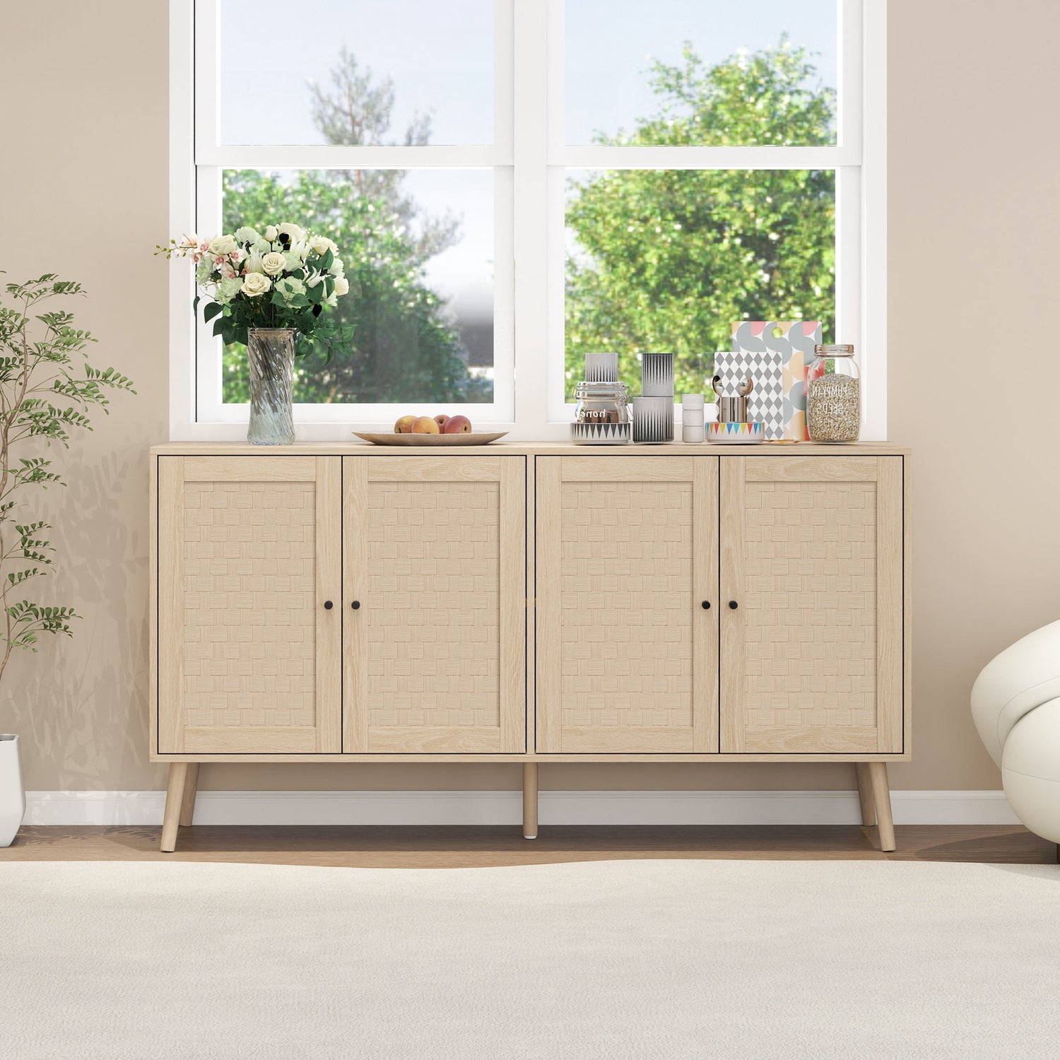 4 Door Accent Cabinet Sideboard Buffet Storage Cabinet with Adjustable Shelf for Entryway Living Room Bedroom - Natural is backordered and will ship as soon as it is back in stock.