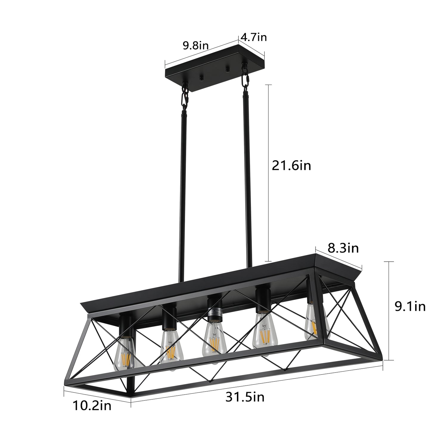 5-light farmhouse pendant light, metal pendant light island fixture, modern rectangular island light, pure black (no bulb)