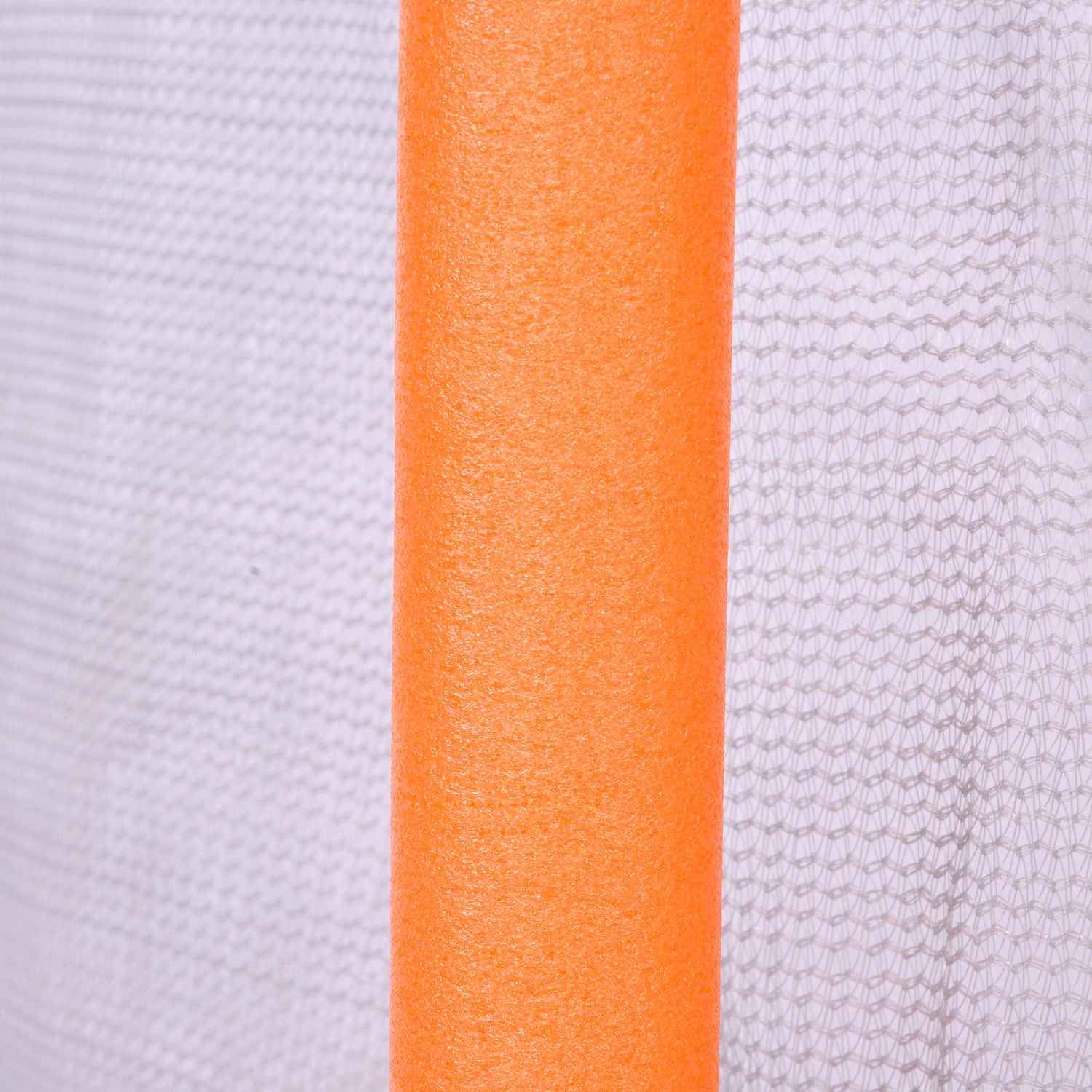 SAFE & DURABLE - Large-sized galvanized steel structure, foam-padded poles and safety net ensure safety while jumping in the trampoline. Reinforced T-sockets stabilize the upper enclosure frame, high-quality pad protector is sewn to the mat and covers the safety springs, no need to worry your kids feet get stuck while playing.