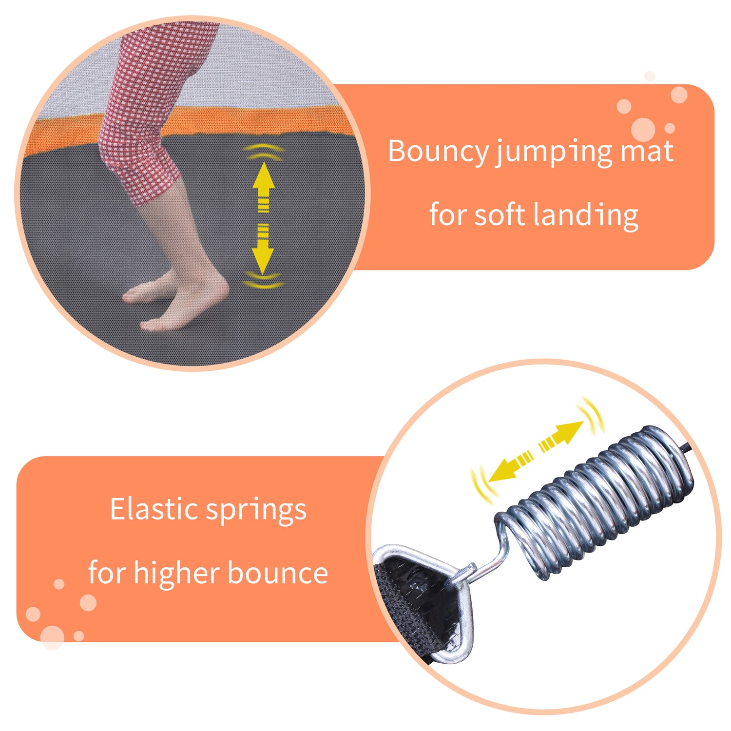 SUPERIOR BOUNCE - Quality polypropylene jumping mat and heavy gauged 30 springs provide robust strength and bounce while jumping. The bright pink / green / blue color design makes the trampoline look more athletic and dynamic.