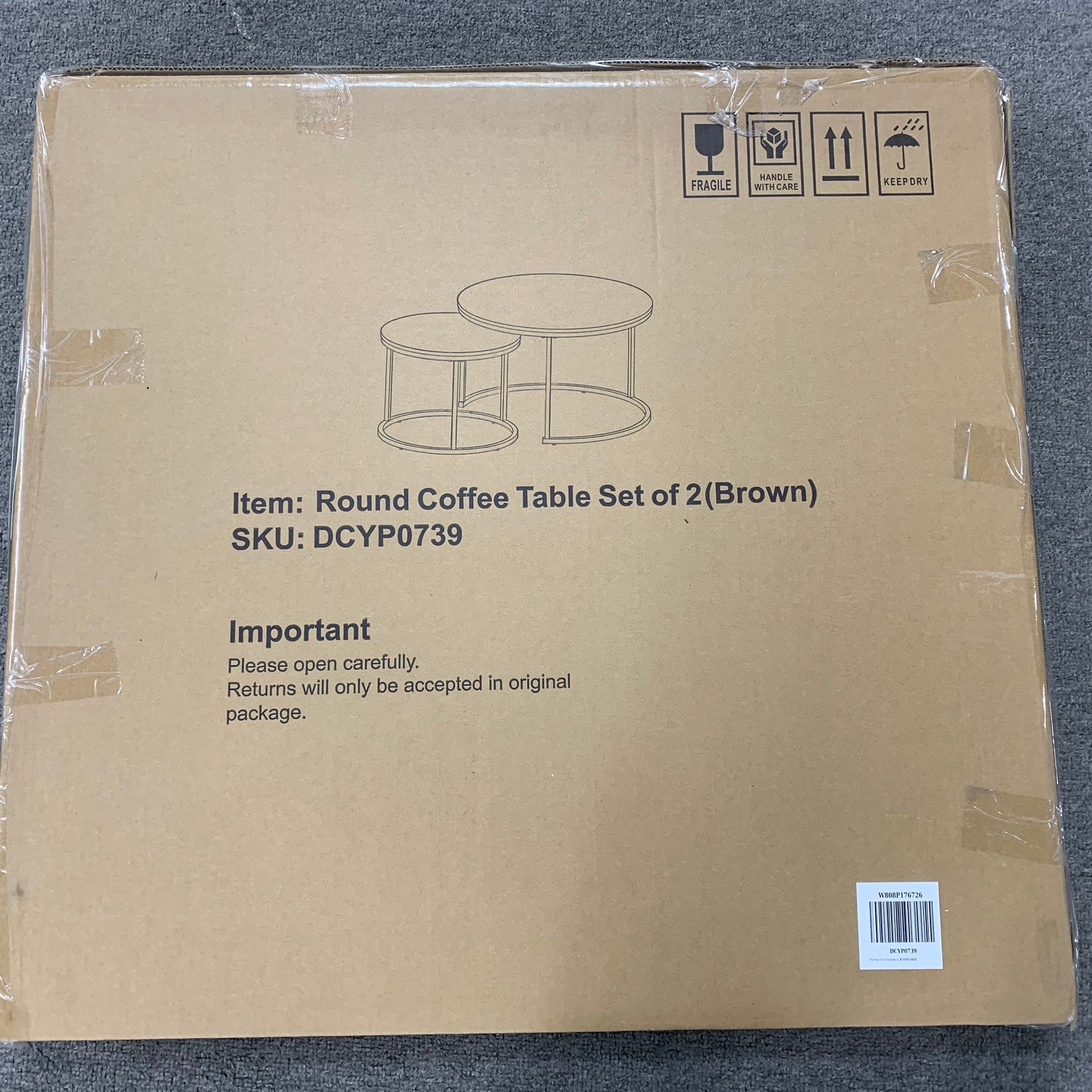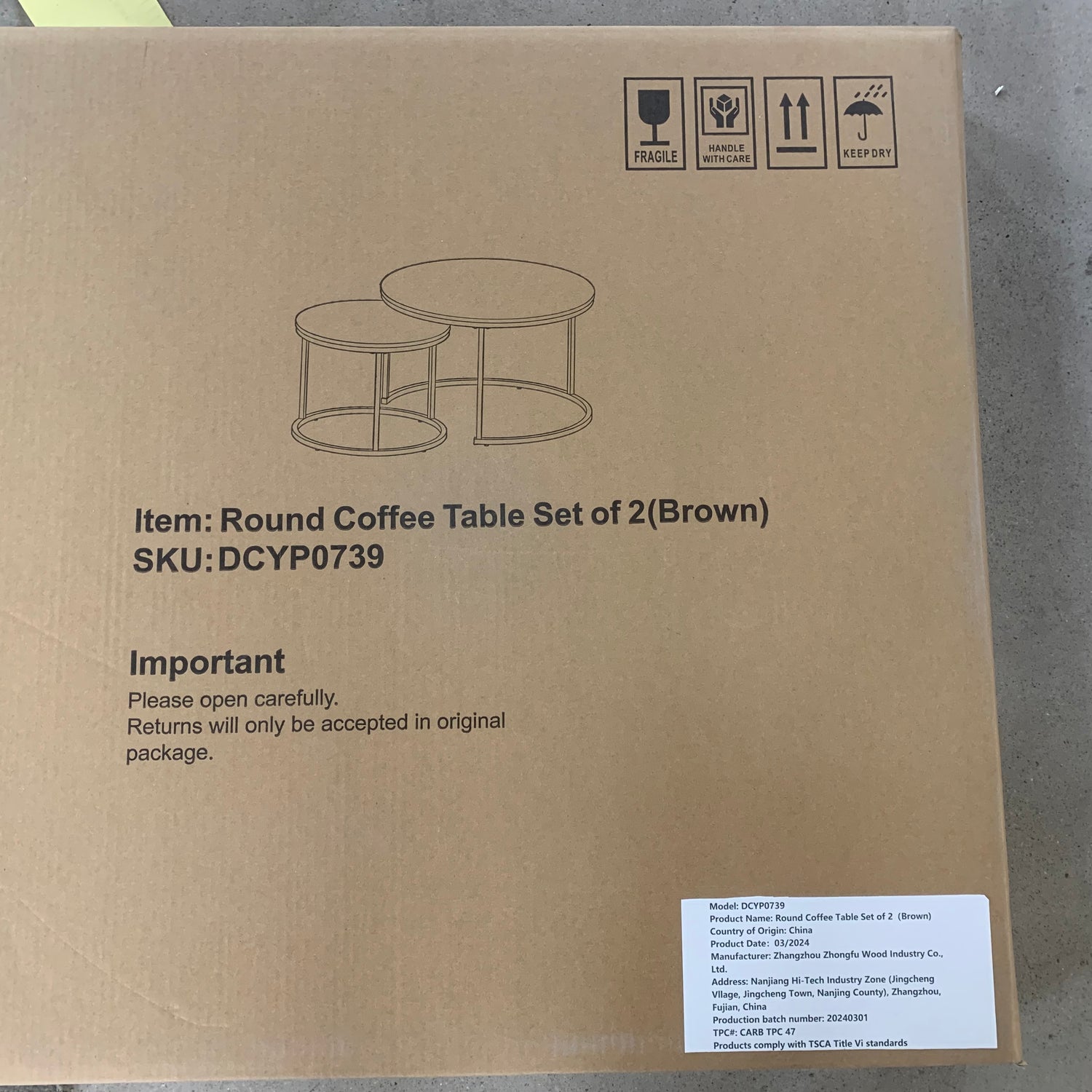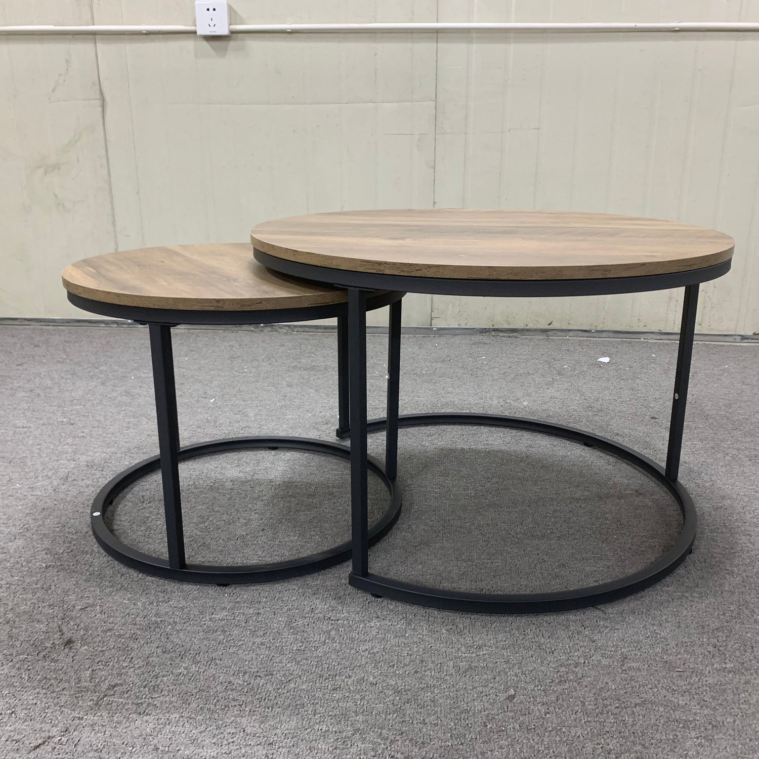 A set of nested coffee tables, 27.6-inch round coffee table, industrial wood veneer, with sturdy metal frame (brown) - Brown + Wood+Metal is backordered and will ship as soon as it is back in stock.