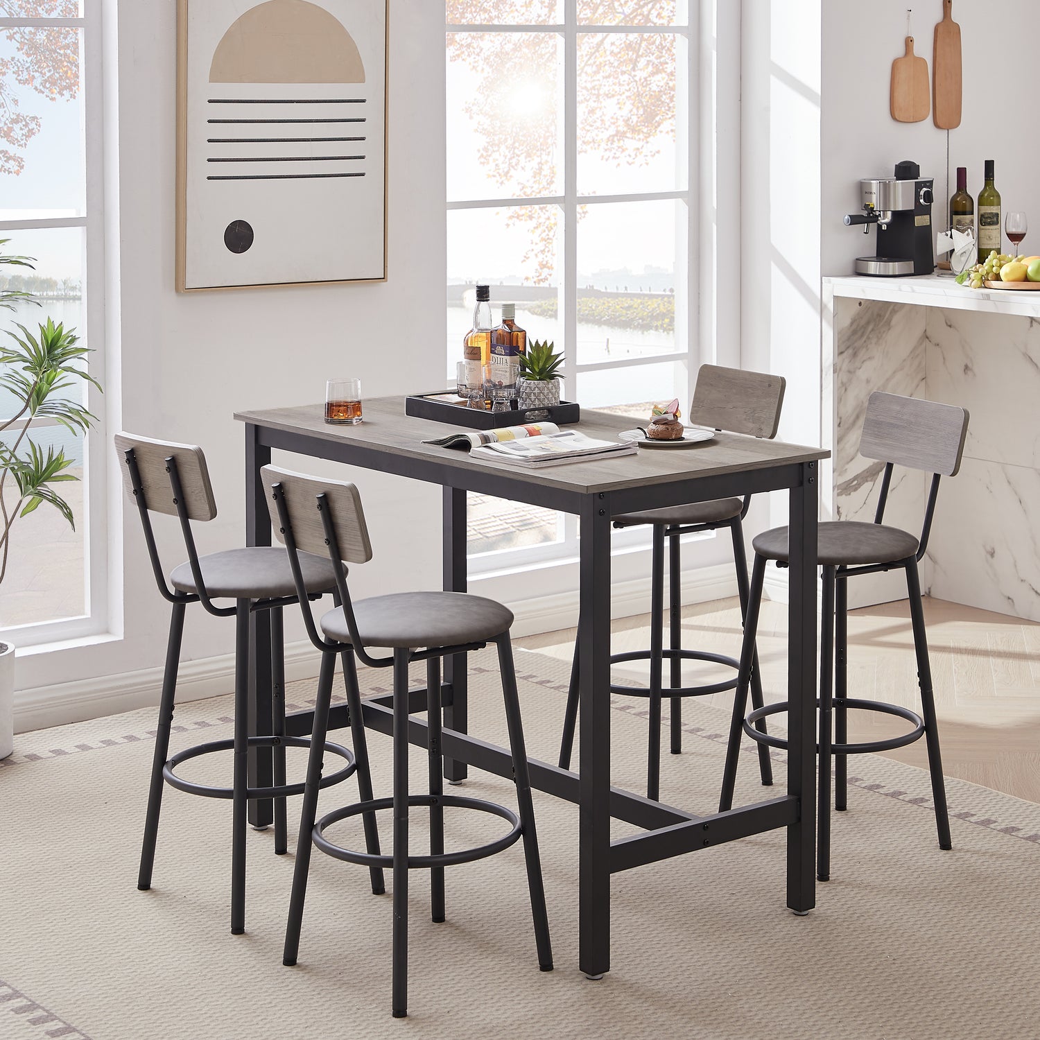 Bar Table Set with 4 Bar stools PU Soft seat with backrest Grey 47.24'' L x 23.62'' W x 35.43'' H - V.I.P Digital Presence