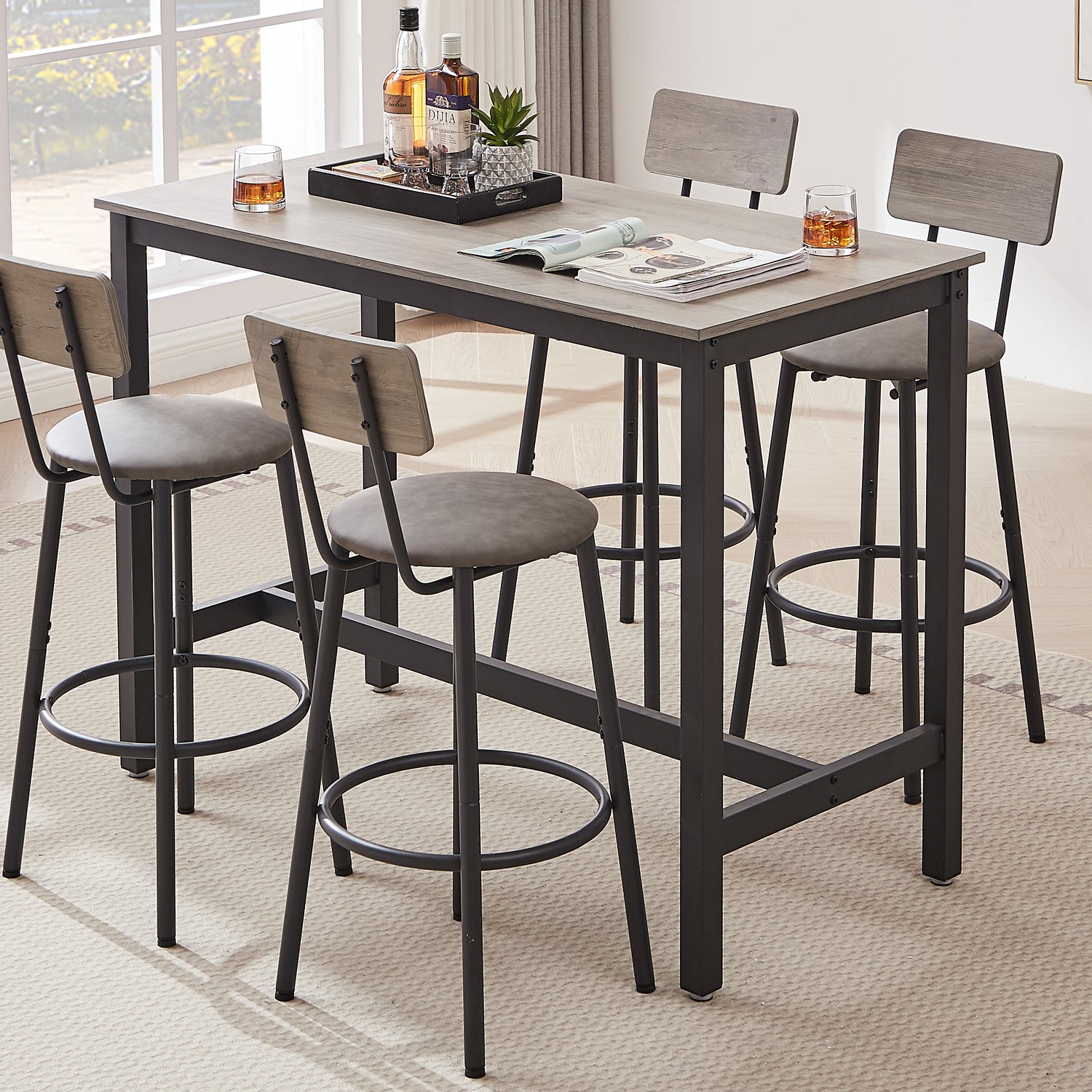 Bar Table Set with 4 Bar stools PU Soft seat with backrest Grey 47.24'' L x 23.62'' W x 35.43'' H