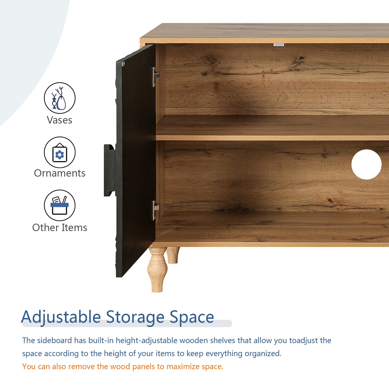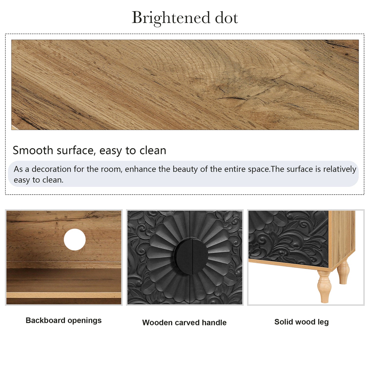 Black Carved Symmetrical Design Door And Wood Coloured Frame For TV Stand Table,Living Room ,Entryway