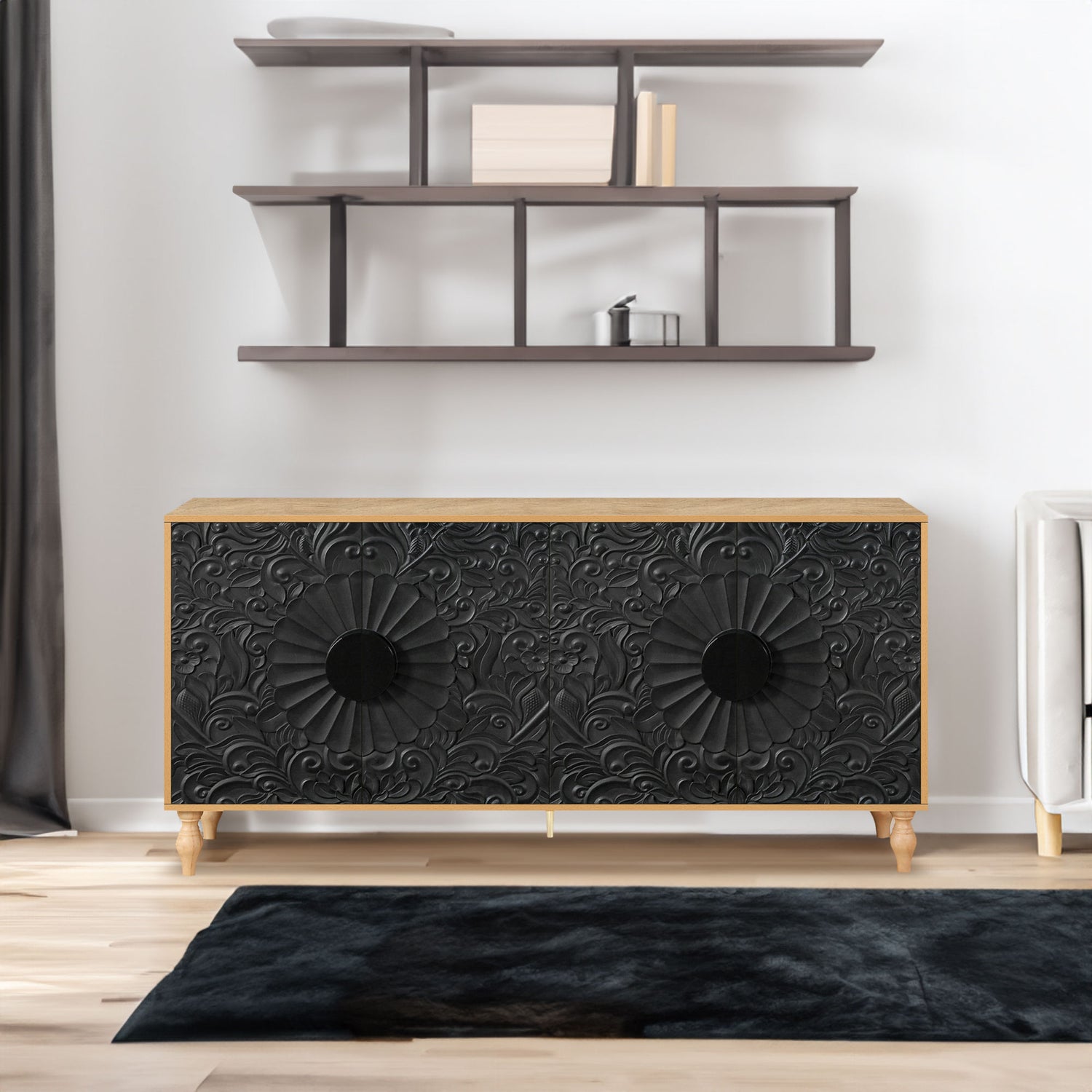 Black Carved Symmetrical Design Door And Wood Coloured Frame For TV Stand Table,Living Room ,Entryway - V.I.P Digital Presence