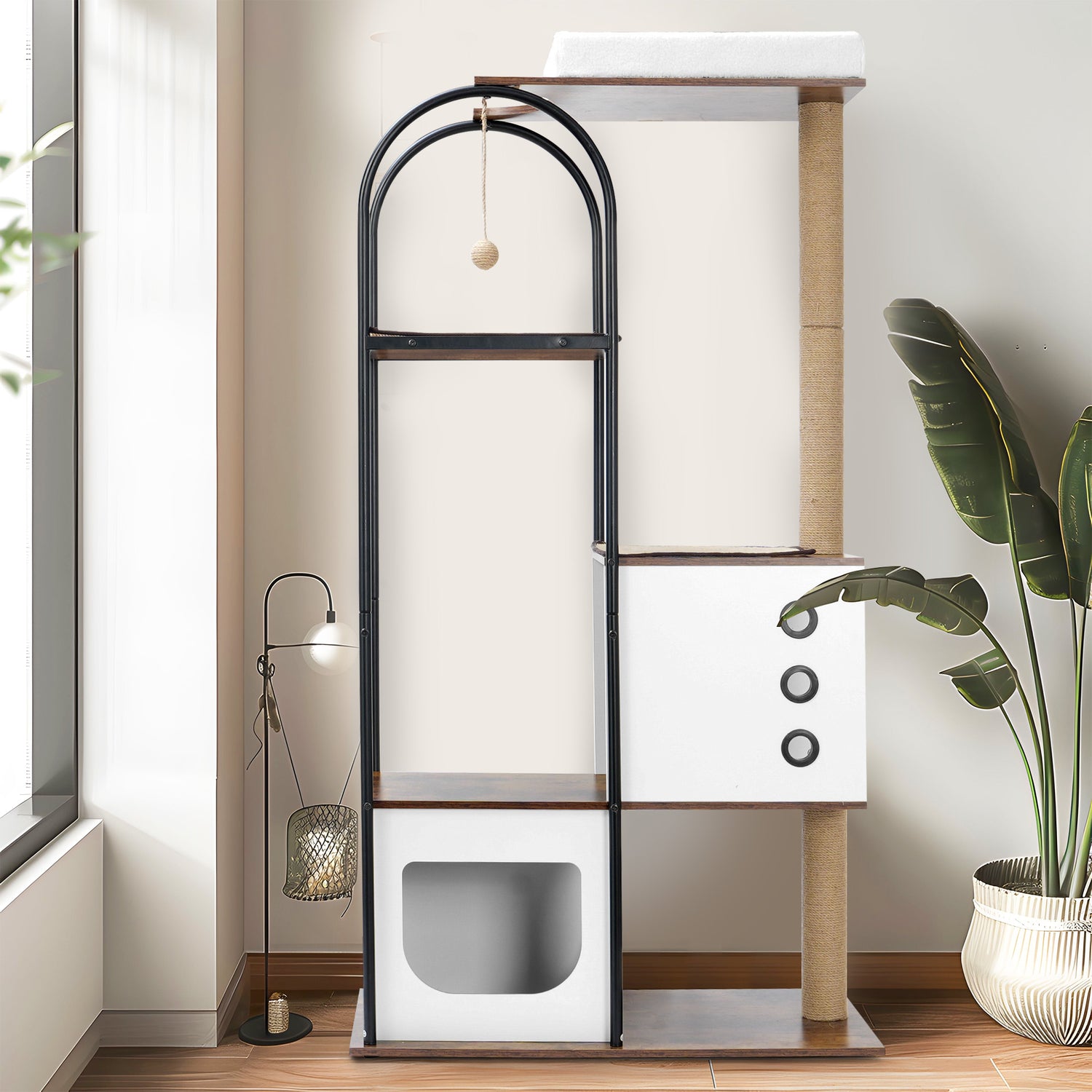 3.Modern Style: With rectangular design and curved steel tubes, this cat tree condo is sophisticated and modern. Whether you put it in your living room, bedroom or balcony, anywhere, this cat tree will give your space an upgrade.