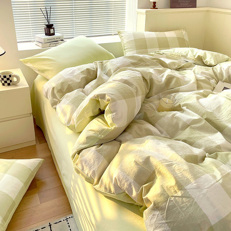 Cotton Dyed Washed Cotton Bedding Set Pure Cotton A Class Flat Sheet Quilt Cover Fitted Sheet Quilt Cover Three-Piece Set Striped