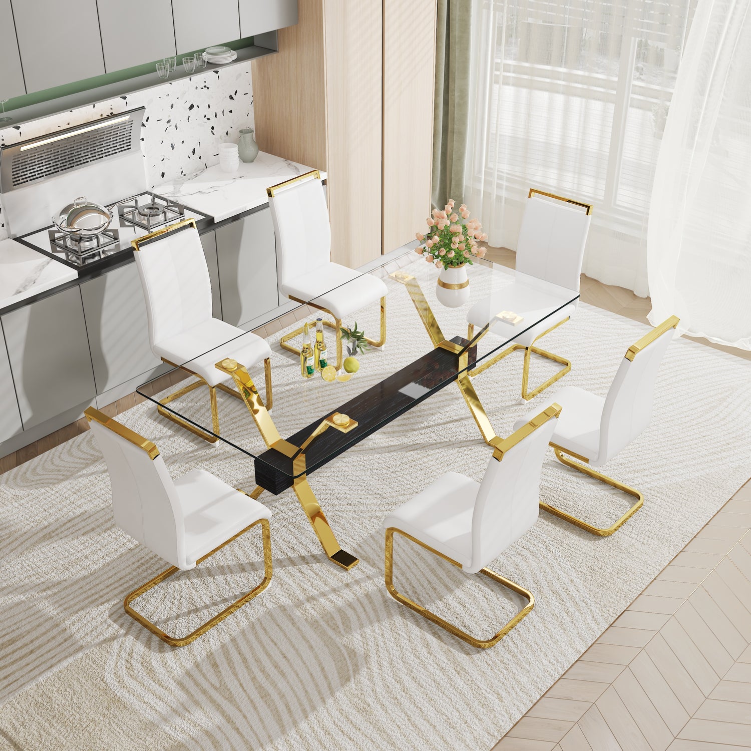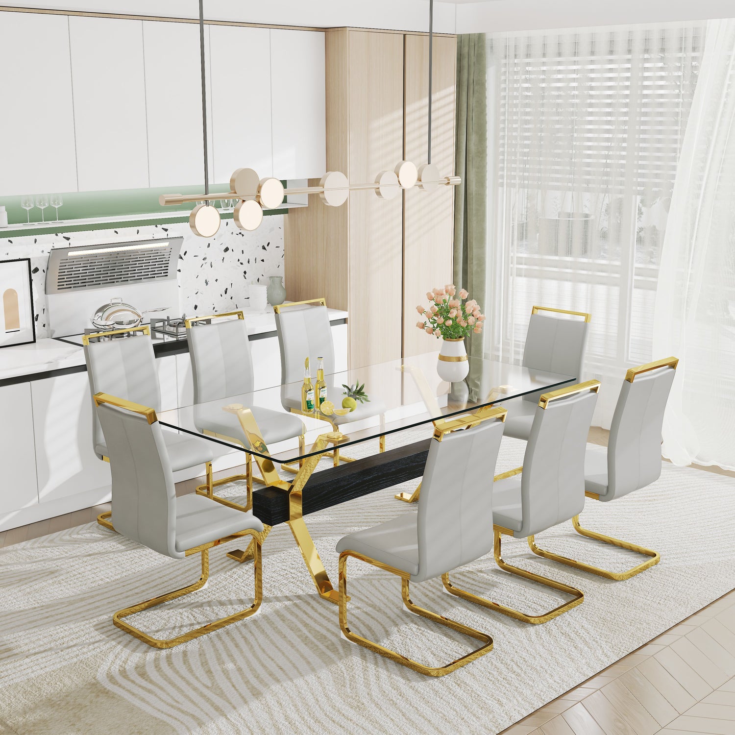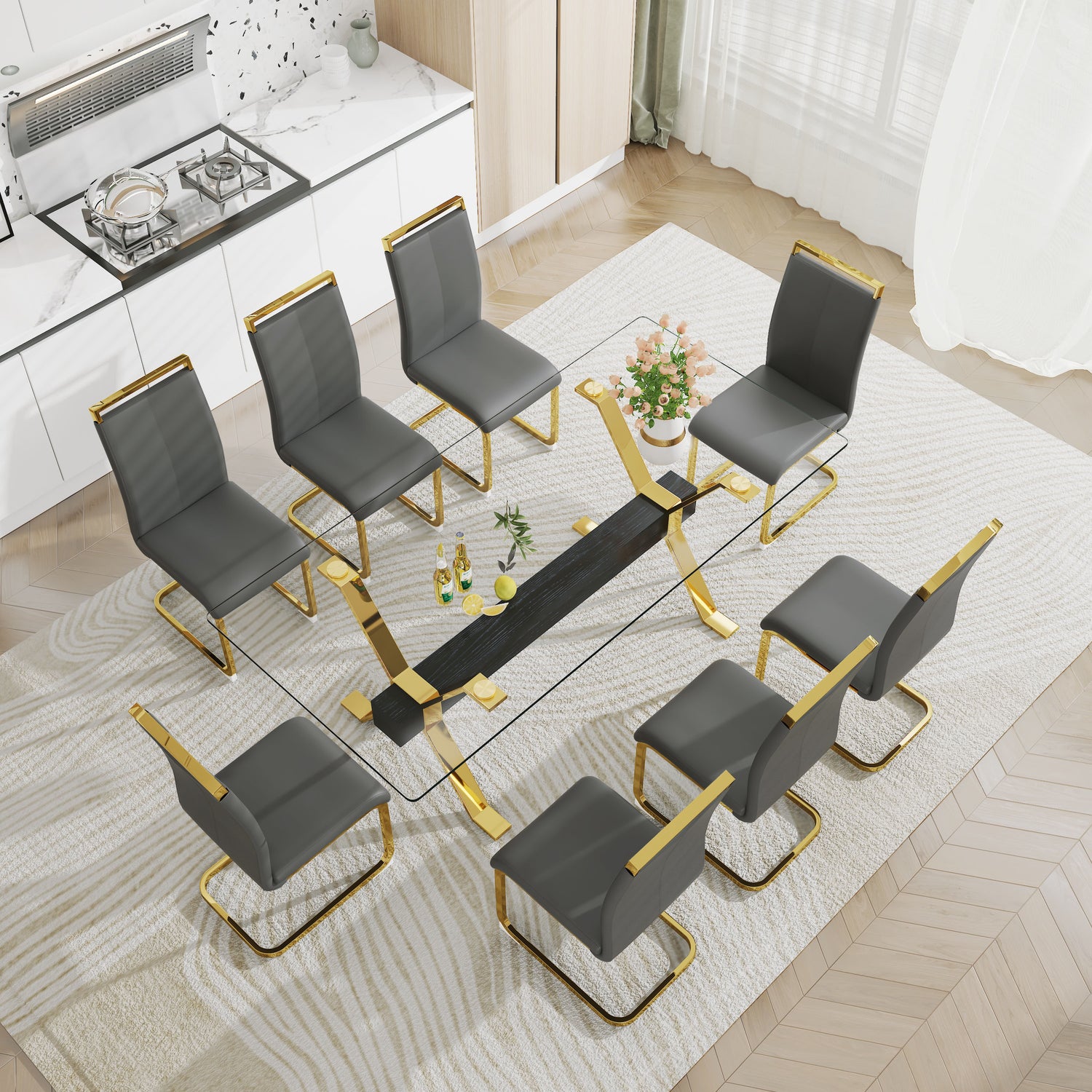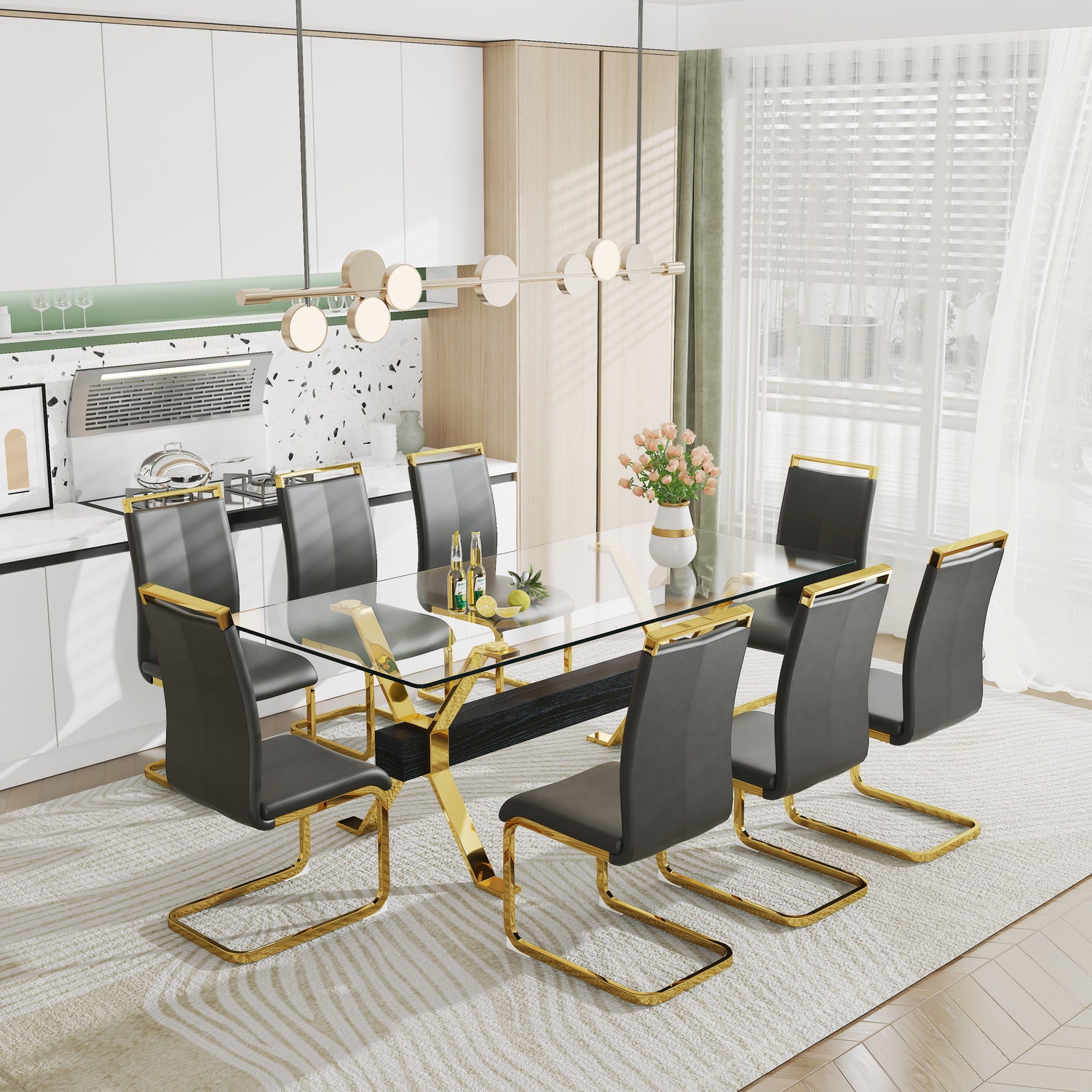 Dining table Modern tempered glass dining table Large modern office desk - Transparent + Glass is backordered and will ship as soon as it is back in stock.
