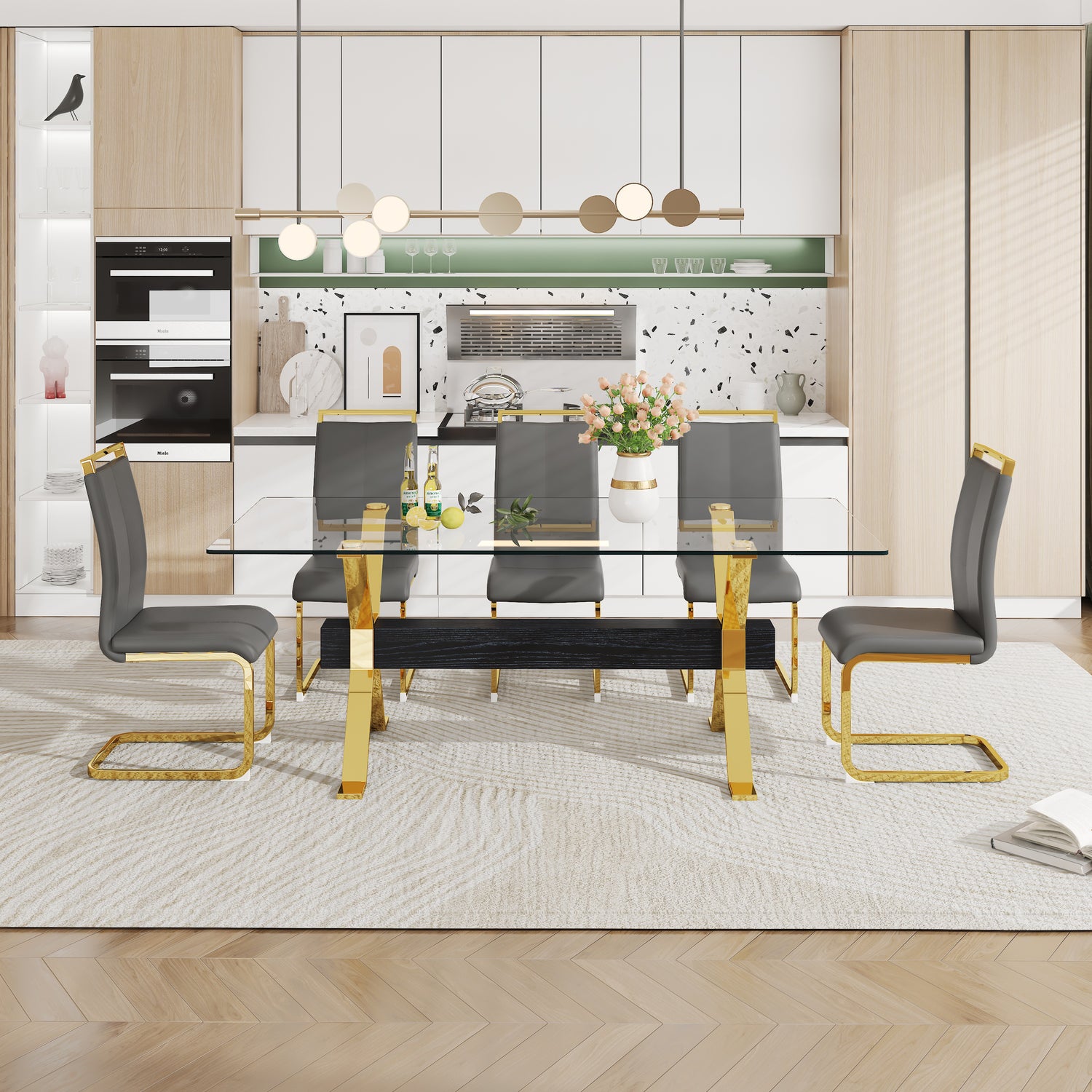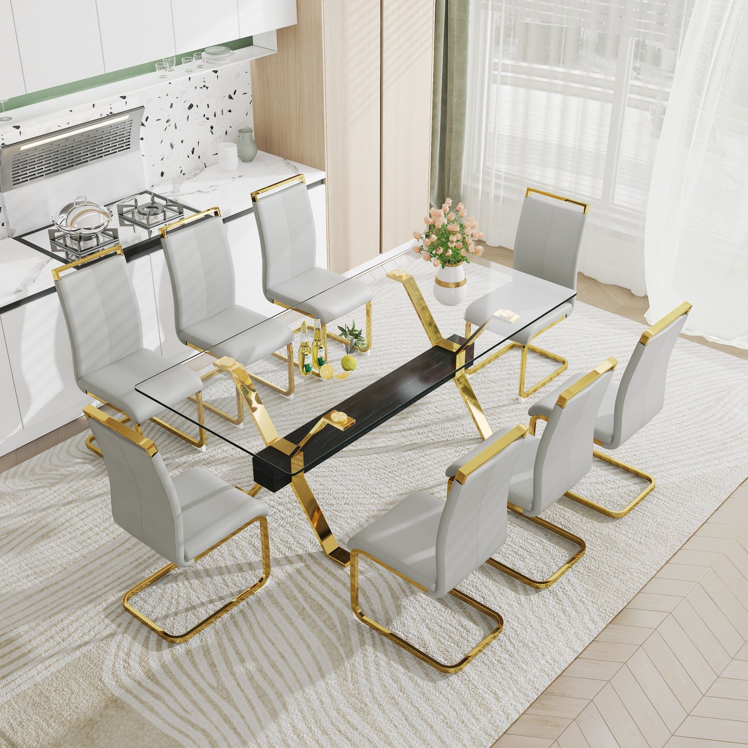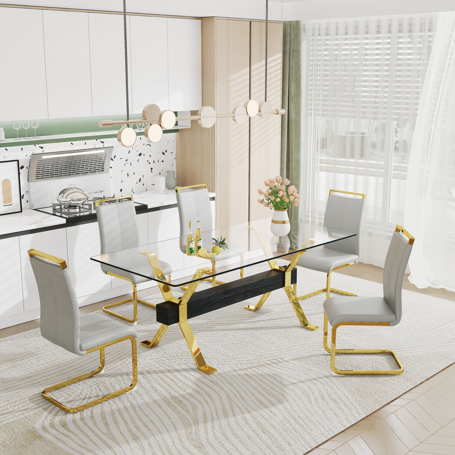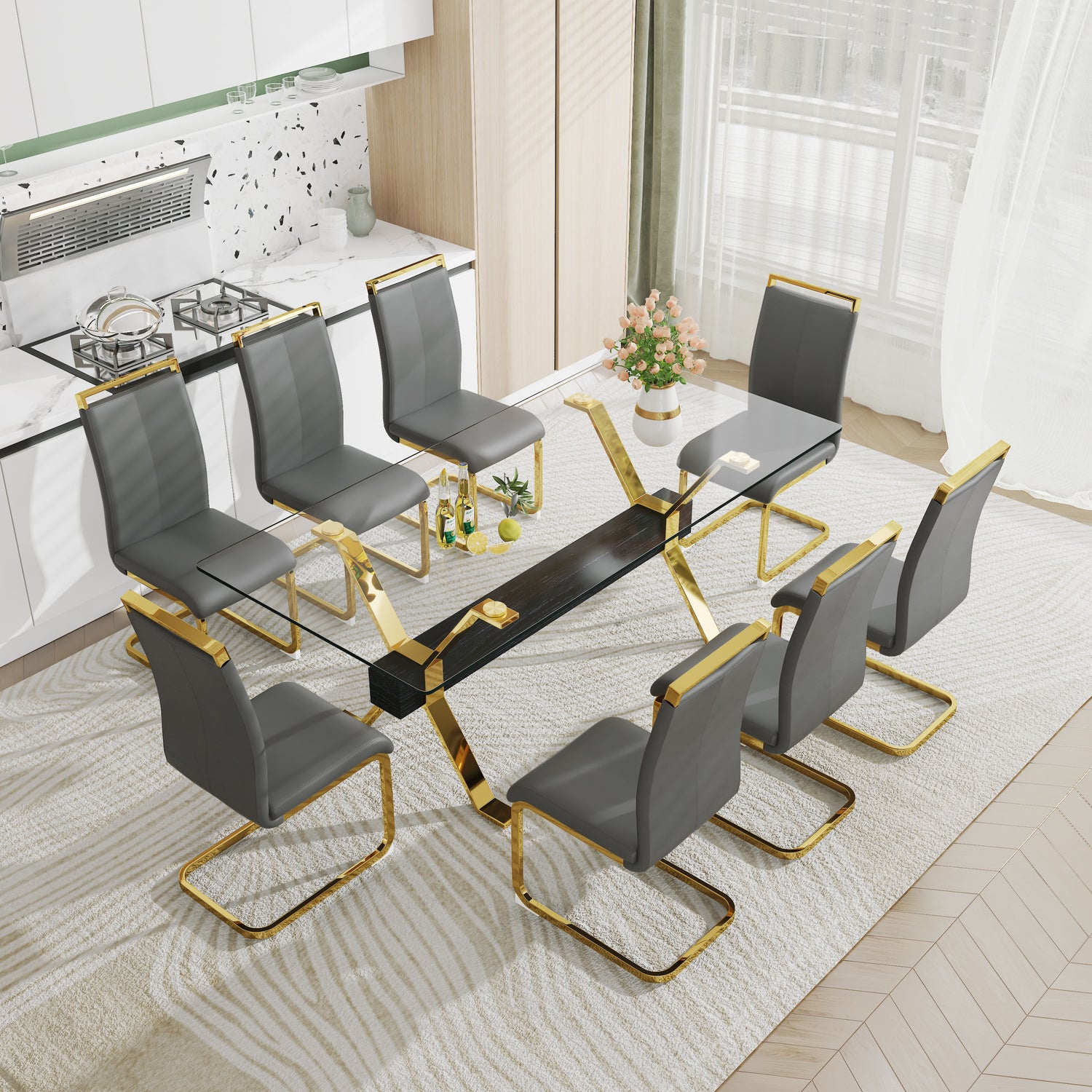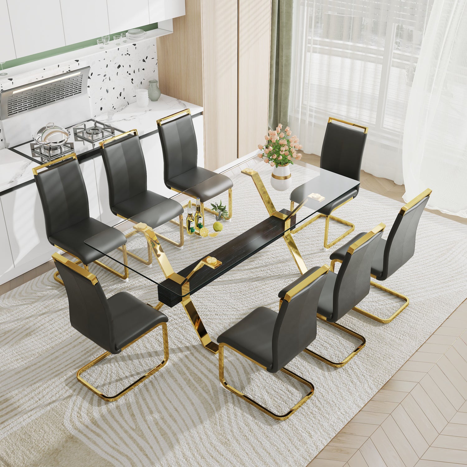 Dining table Modern tempered glass dining table Large modern office desk - Transparent + Glass is backordered and will ship as soon as it is back in stock.